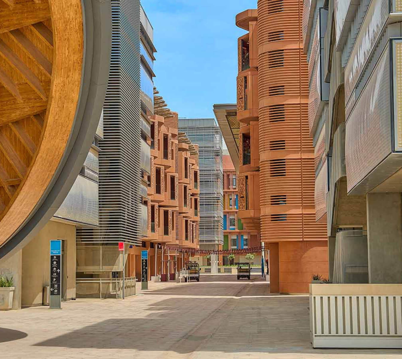 Cafes and restaurants, shops and malls, bus routes, green spaces, and striking architecture make Masdar City one of Abu Dhabi’s premier technological hubs. Its infrastructure includes research centers located alongside recreational areas, medical facilities, and institutes.