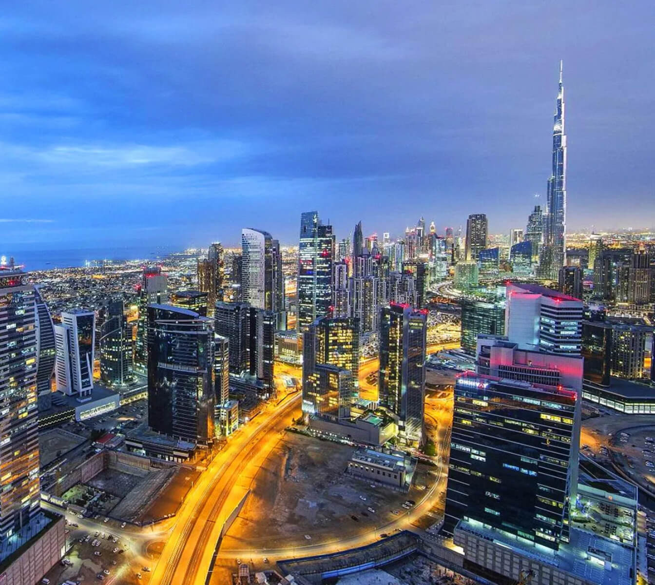 Business Bay is a vibrant business center with high-rise buildings, luxury real estate, and a dynamic atmosphere
