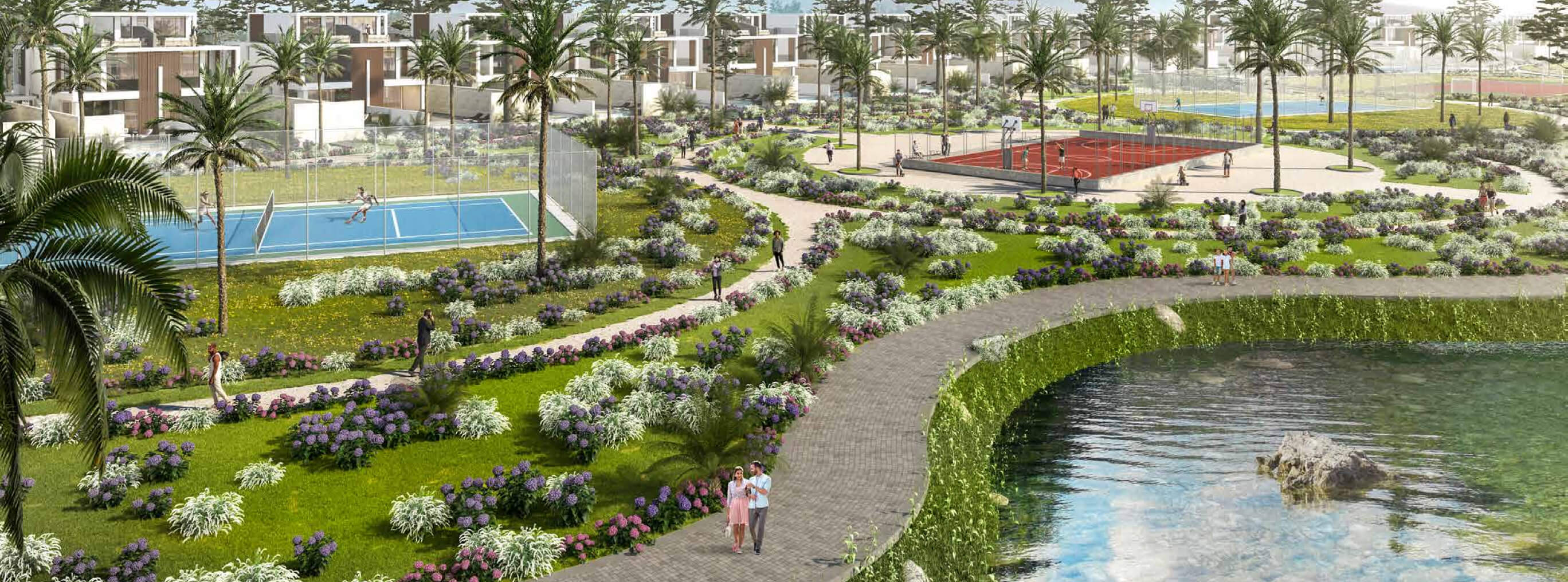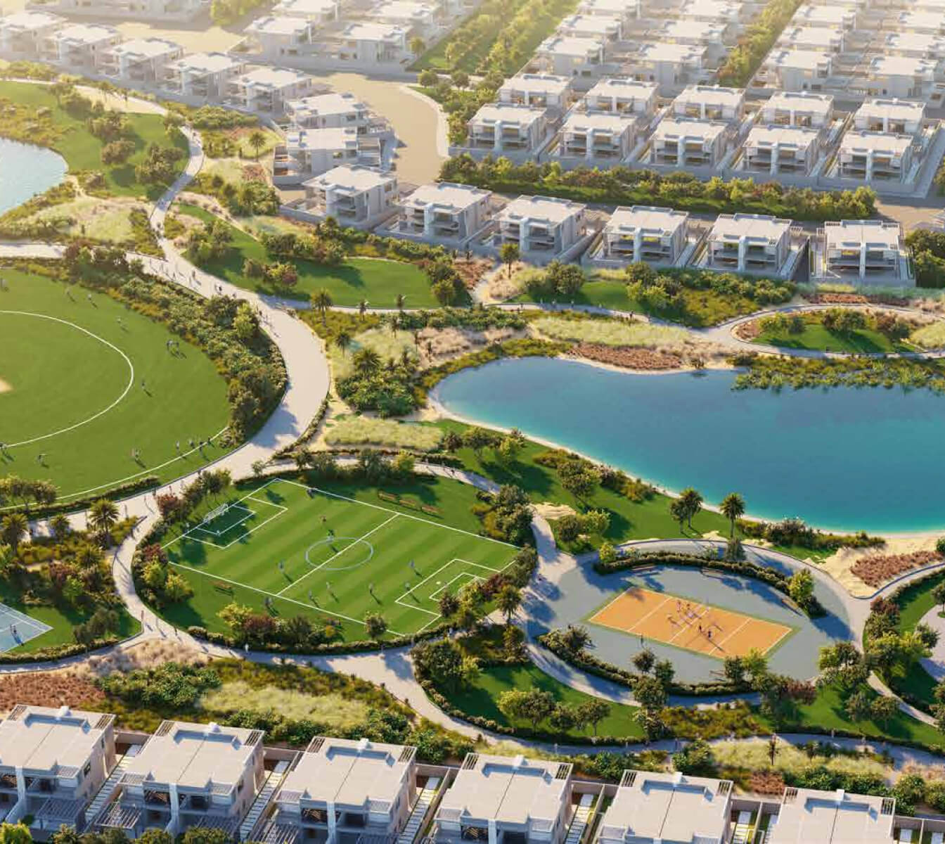 Damac Hills 2 is a project by DAMAC and a logical continuation of the first phase. There is even more greenery and space for sports and everyday activities. The area is 25 km in a straight line from Dubai Marina. The beaches of JBR and Palm Jumeirah are a 45-minute drive away. Damac Hills 2 is a quiet and calm suburb, an oasis with a self-sufficient infrastructure. The community has everything you need for comfortable living, from kindergartens and supermarkets to a medical clinic and an equestrian club.