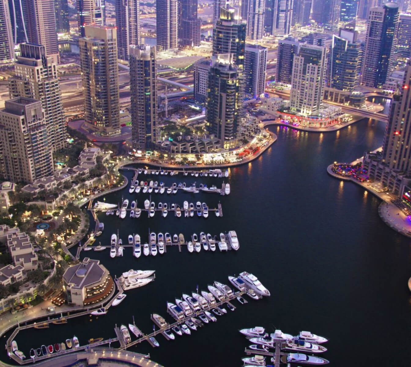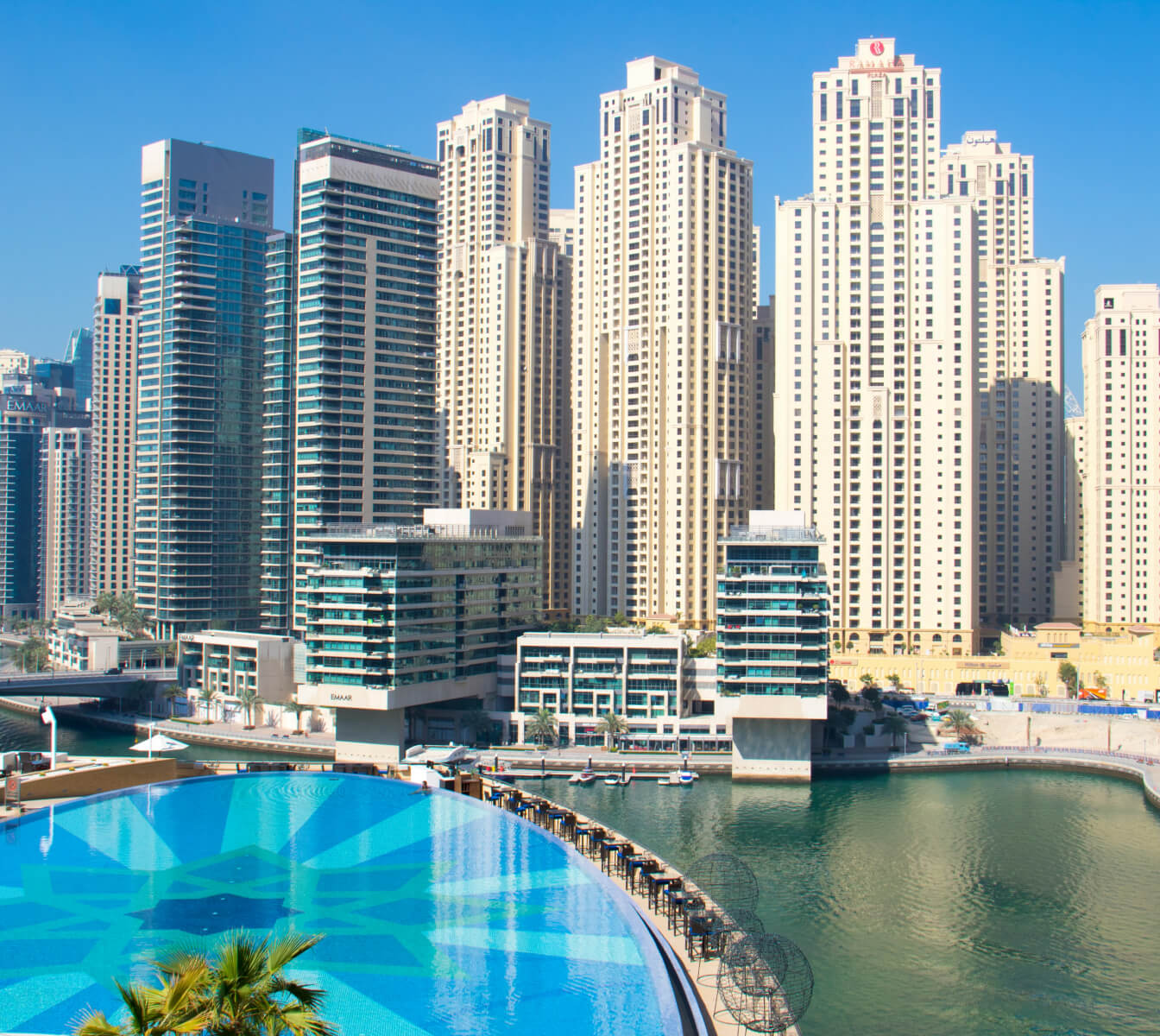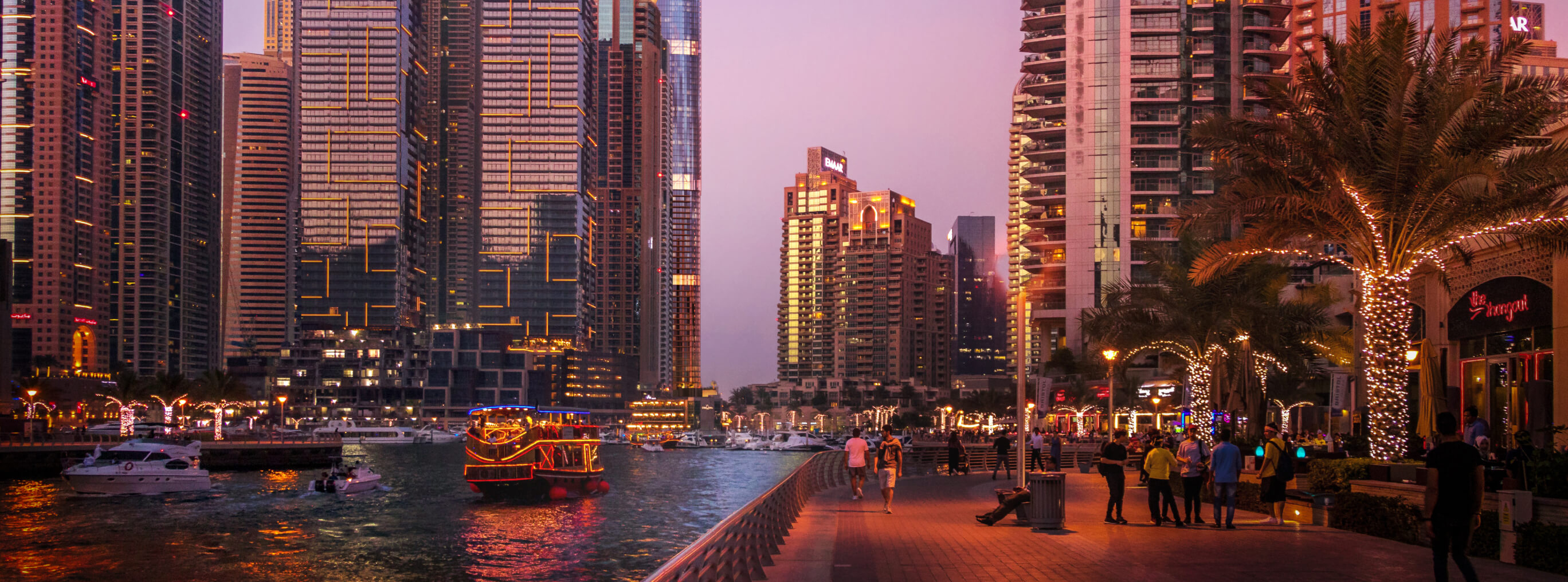 Dubai Marina is a coastal area surrounded by Dubai's famous skyscrapers