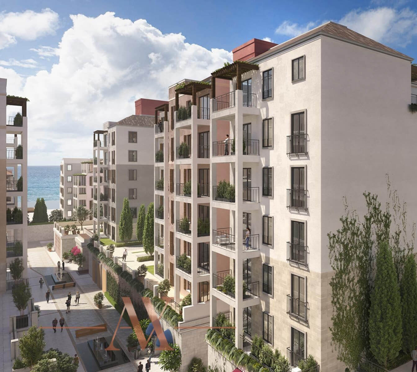 Port De La Mer is a cozy Mediterranean-style coastal neighborhood located on a peninsula. The 25 medium-rise buildings, up to 6 stories high, house premium 1-4 bedroom apartments. It offers residents a private beach, waterfront restaurants, an aqua park and a marina for 190 yachts.