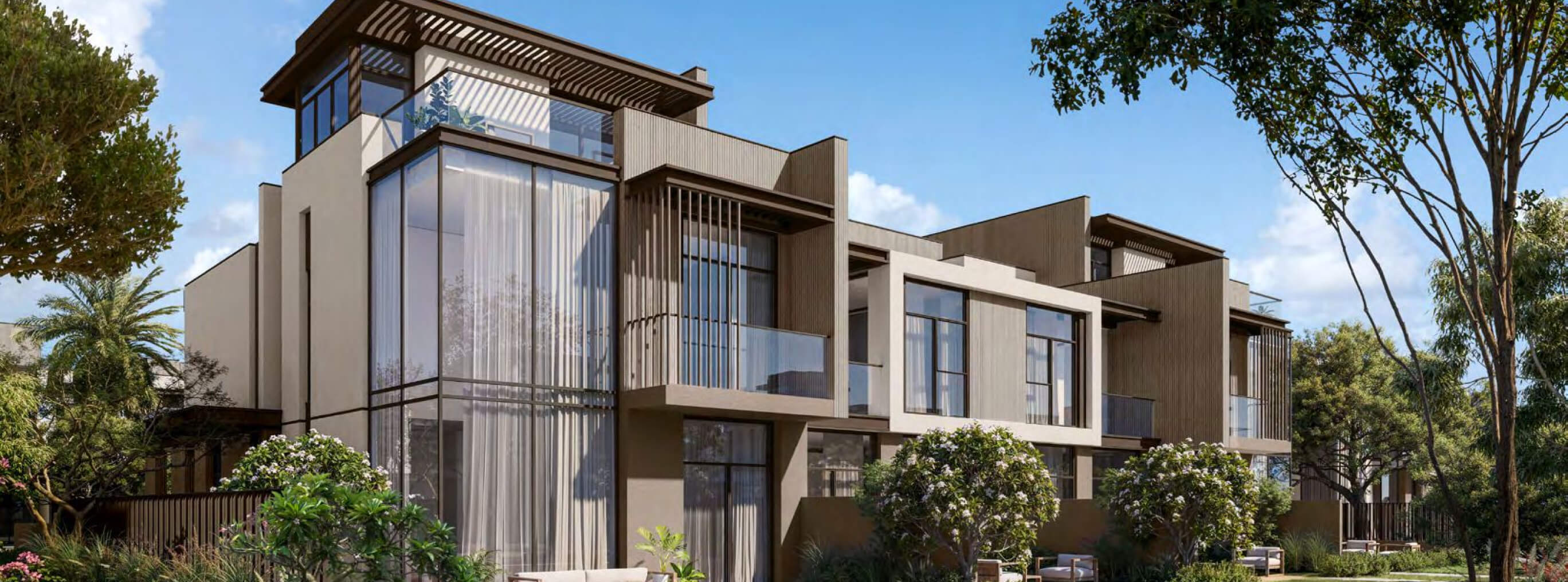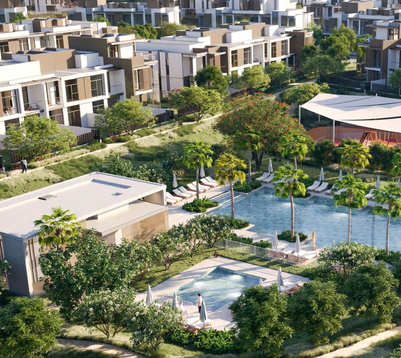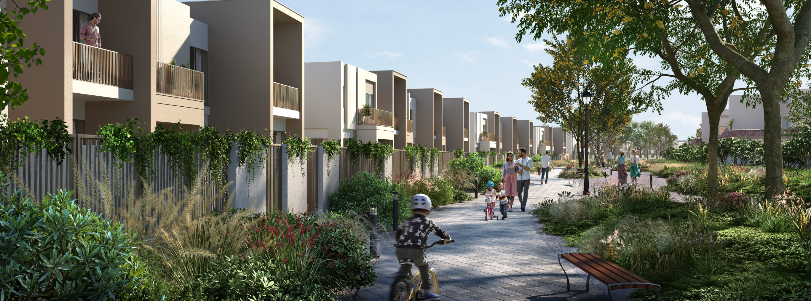 The area mainly consists of villas and townhouses with 3, 4, and 5 bedrooms. The architecture in the area is inspired by the Mediterranean style. The villas have open layouts with spacious kitchens, as well as a variety of amenities, including large green areas for BBQ and picnics, gyms, pools, and playgrounds. The choice of real estate is presented in several communities with diverse locations and sizes. Prices for townhouses on average start from $500,000.