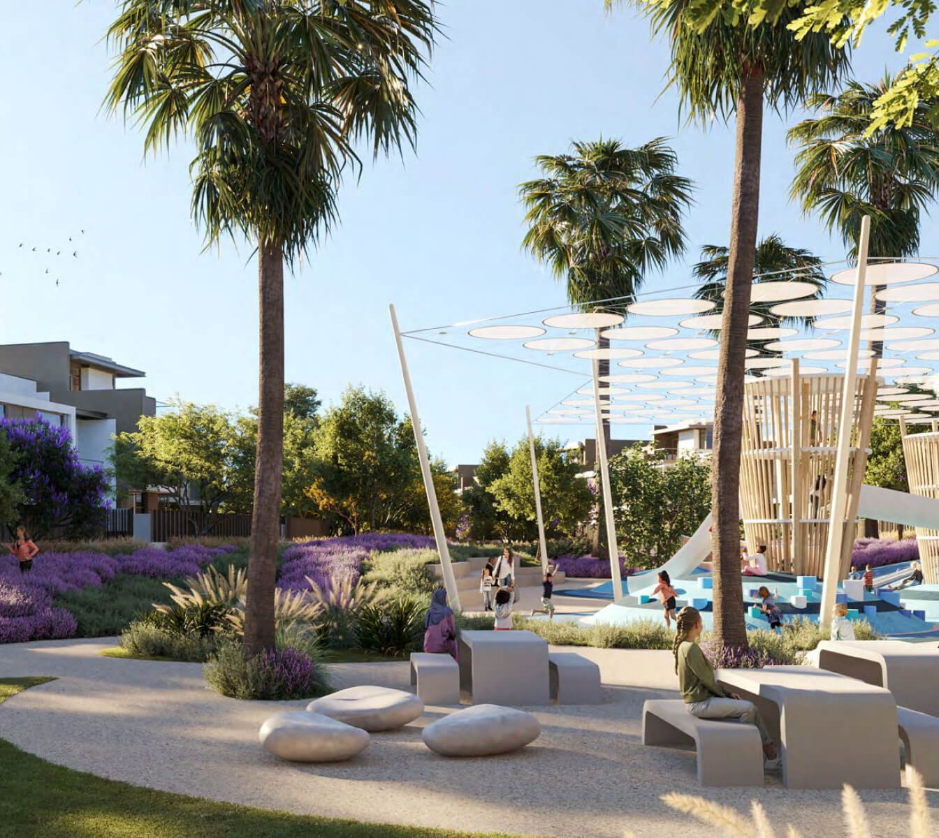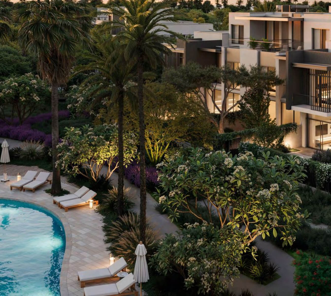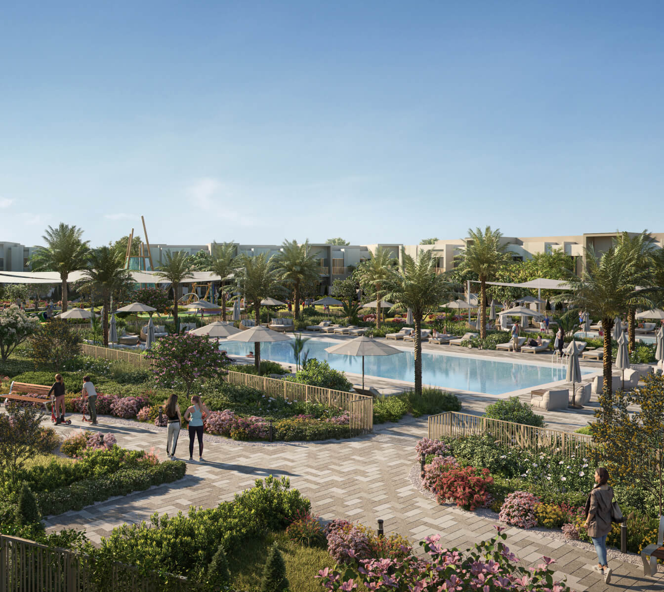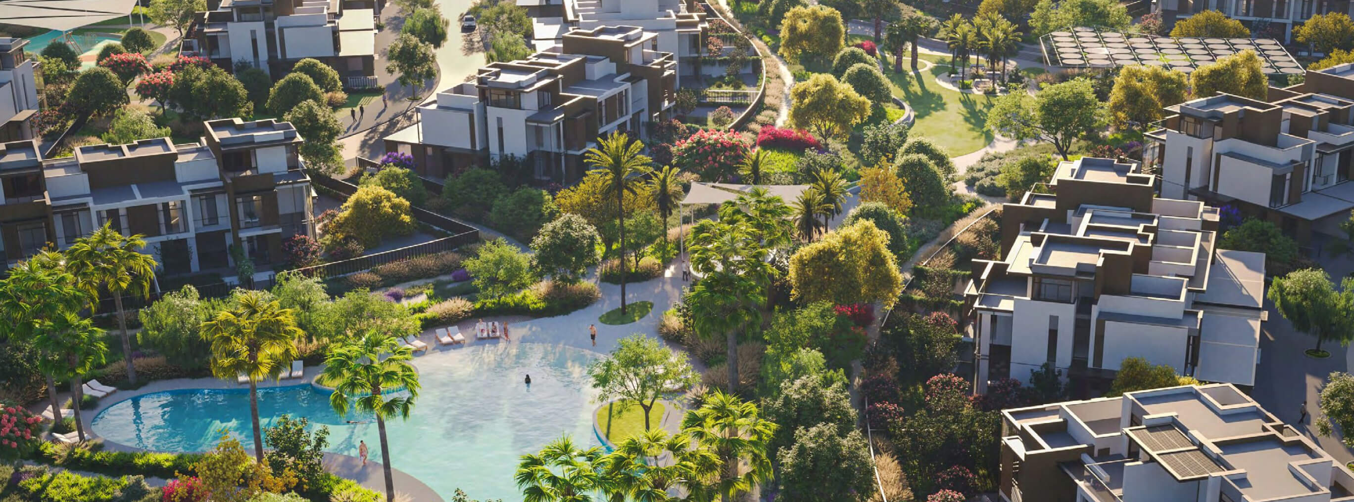 The area mainly consists of villas and townhouses with 3, 4, and 5 bedrooms. The architecture in the area is inspired by the Mediterranean style. The villas have open layouts with spacious kitchens, as well as a variety of amenities, including large green areas for BBQ and picnics, gyms, pools, and playgrounds. The choice of real estate is presented in several communities with diverse locations and sizes. Prices for townhouses on average start from $500,000.