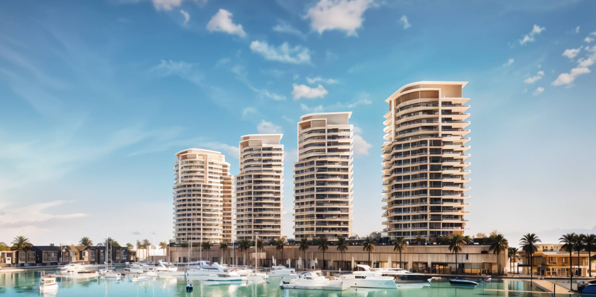 Developer Al Hamra Real Estate offers to purchase real estate at Al Hamra Waterfront in the residential community of Al Hamra Village, in one of the most convenient emirates to live in — Ras Al Khaimah. We have studios, one-bedroom, two-bedroom, and three-bedroom apartments, as well as townhouses available for purchase. The size of apartments ranges from 41 square meters to 189 square meters, and the size of townhouses starts at 466 square meters. Prices for Al Hamra Waterfront properties start at 1,015,000 AED. In the residential complex, 5 18-story multi-apartment buildings and 19 townhouses will be constructed. The residences will be rented with turnkey finishes, with interiors designed in light colors using natural materials. Apartments offer views of the promenade and the Persian Gulf. Completion of the project is scheduled for the first quarter of 2027.