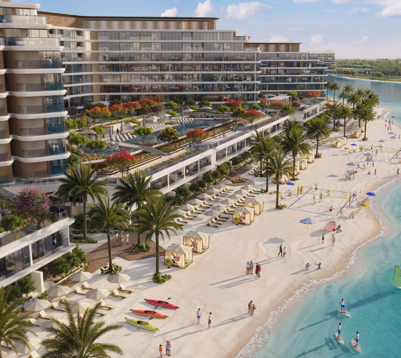 Aquamarine Beach Residences, a residential complex developed by Sobha Realty, is located on the Siniya Island in the Umm Al Quwain emirate. This project offers apartments with one, two, and three bedrooms for purchase. The size of the apartments ranges from 48 square meters to 203 square meters. The starting price for the real estate in Aquamarine Beach Residences is 1 180 000 AED. Residences have been designed to maximize natural light, with open floor plans, panoramic windows, and spacious terraces offering spectacular views. The Sobha Aquamarine Beach project combines urban amenities with the tranquility of nature. The development is scheduled to be completed in the second quarter of 2028.