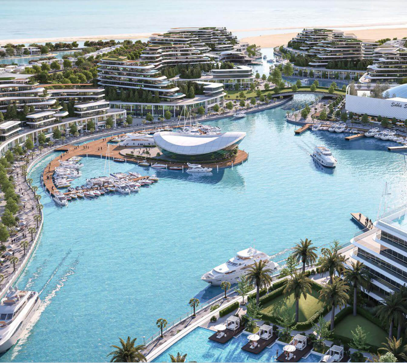 The purchase of real estate at Aquamarine by Sobha will provide residents with a wide range of amenities. The residential complex will include swimming pools, natural and lagoon beaches, a sports hall equipped with modern facilities, a golf course, water sports facilities, a yacht club, an outdoor cinema, children's playgrounds, and more. Around-the-clock security and video surveillance ensure that residents can relax and feel safe. There is also a boulevard nearby with cafes, restaurants, and shops. Located on Siniyah Island, Sobha Aquamarine offers the tranquility of island living along with urban amenities. Points of interest nearby include the Umm Al Quwain National Museum, the Dreamland Aqua Park in Dubai, and the Mall of UAQ. Al Marjan Island is only a 15-minute drive away, and Dubai is about an hour's drive.