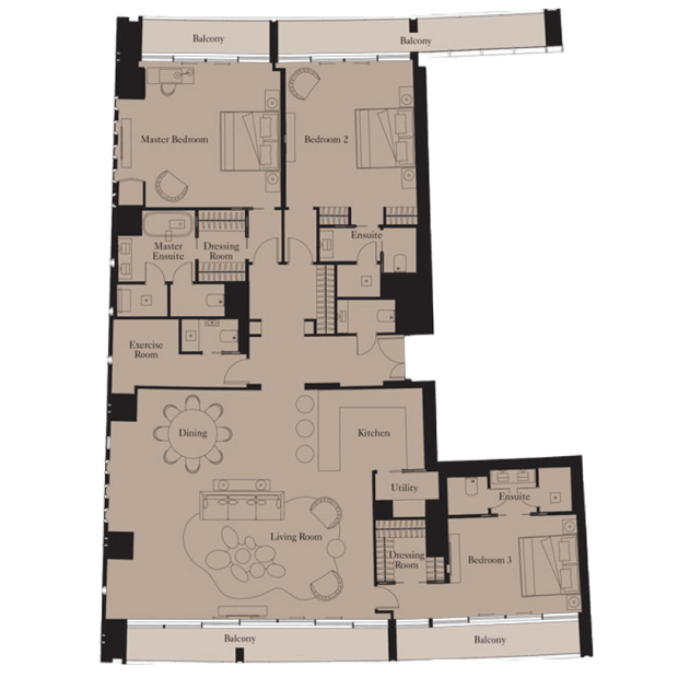 The iconic residential complex Atlantis The Royal Residences by Kerzner International stands on the crescent of Palm Jumeirah. The project offers an array of properties: 2-3 bedroom apartments, 2-4 bedroom duplexes and 4-5 bedroom penthouses. Residents will enjoy a private beach and infinity pools, a wellness center, spa, gym, world-class restaurants and bars. In addition, there are renowned attractions - The Lost Chambers Aquarium, Atlantis Aquaventure Waterpark.