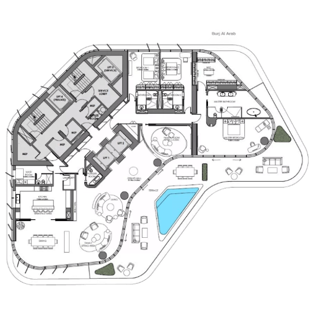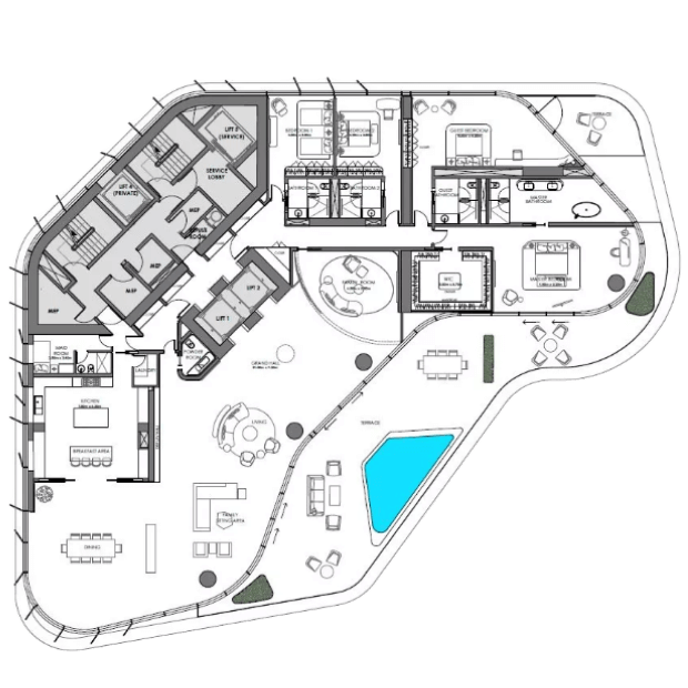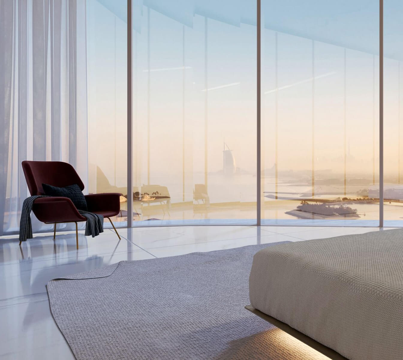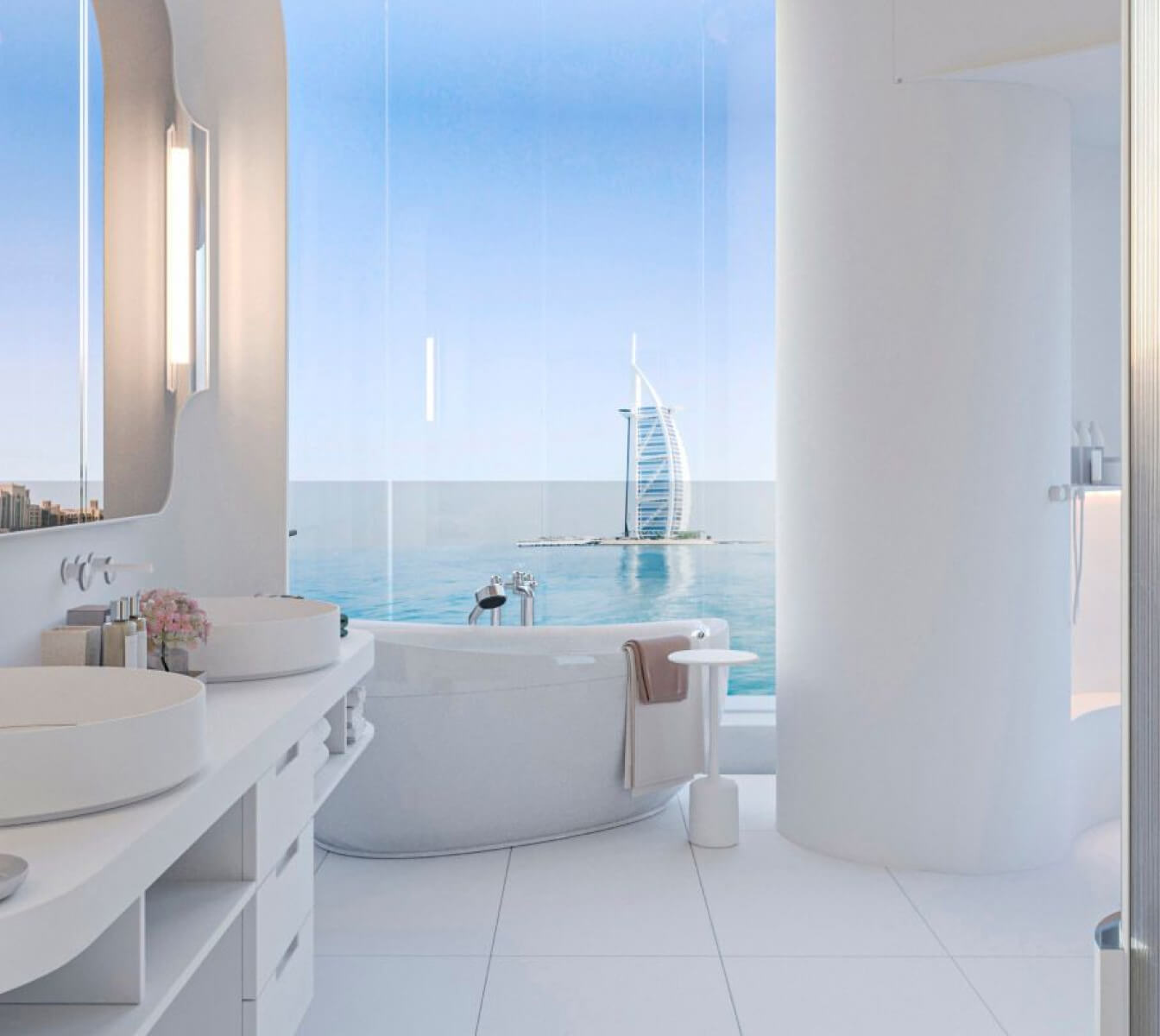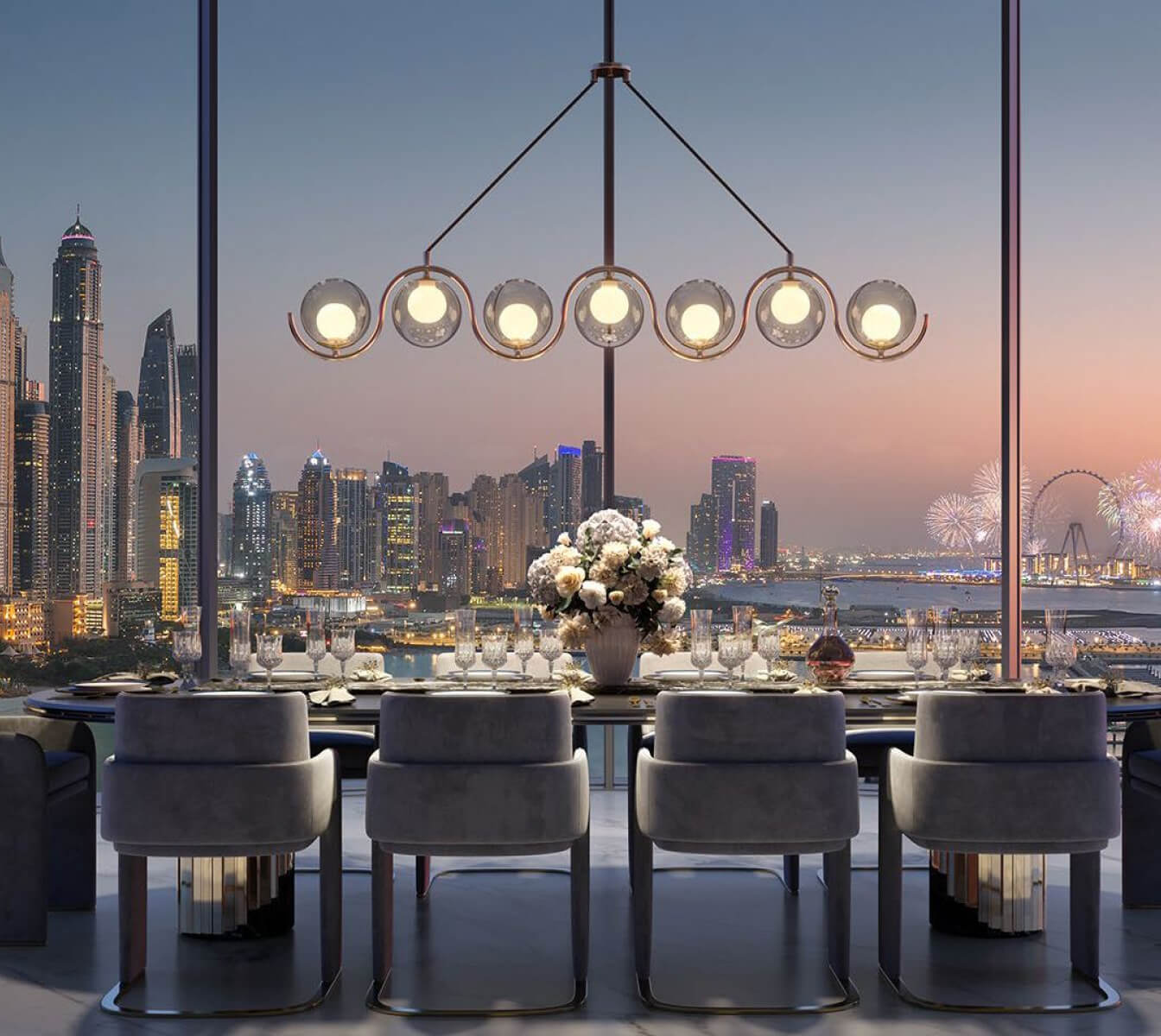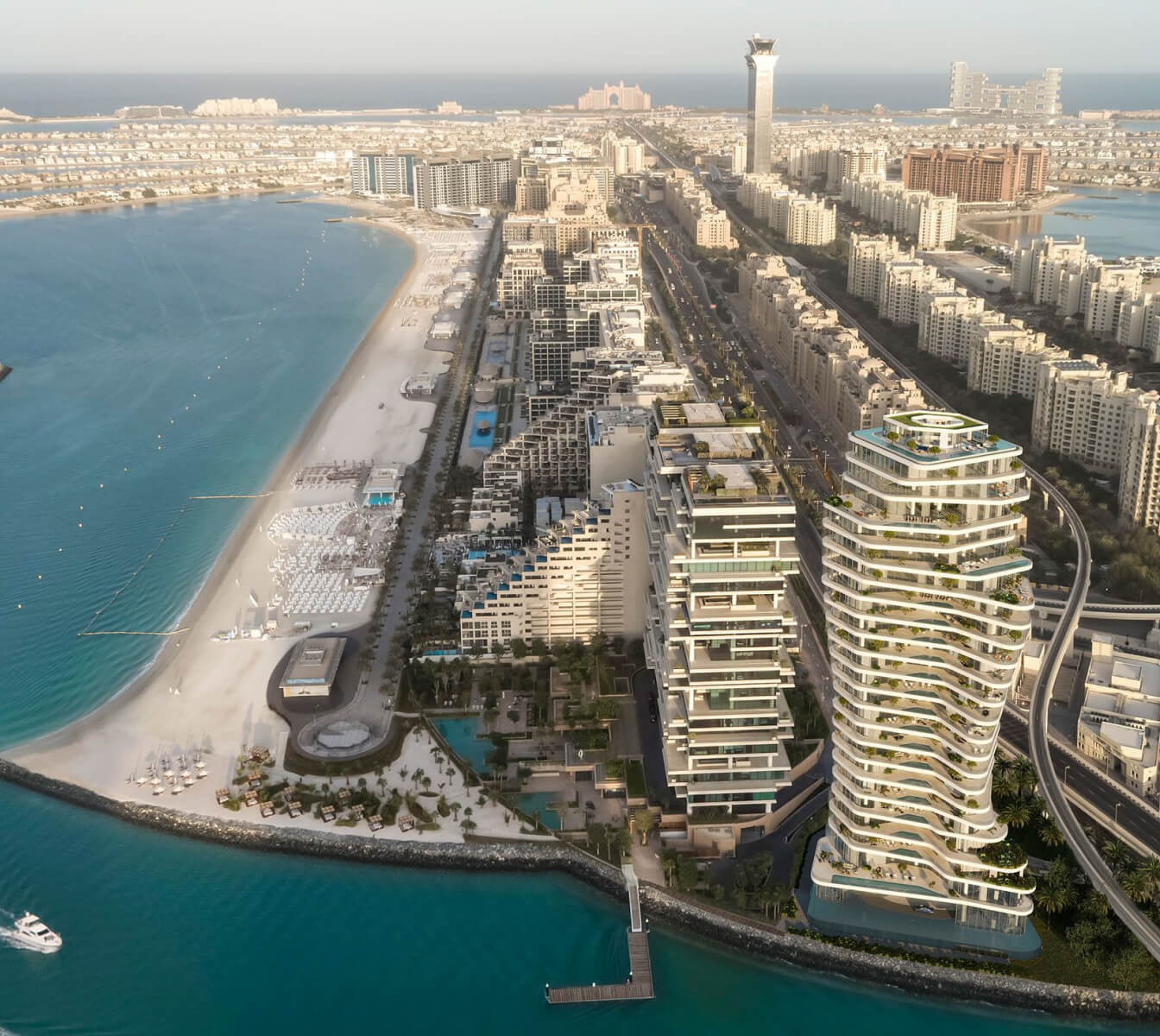 AVA Dorchester Collection is an exclusive project by Omniyat located in Palm Jumeirah. The project features only 17 residences that include 3-4 bedroom apartments, one 4-bedroom duplex, and one 5-bedroom penthouse. Residents will have access to a spa, infinity pool, library lounge, cinema room, gym, as well as all amenities at the neighboring complex One at Palm Jumeirah. The Dorchester Collection brand provides high-class service.