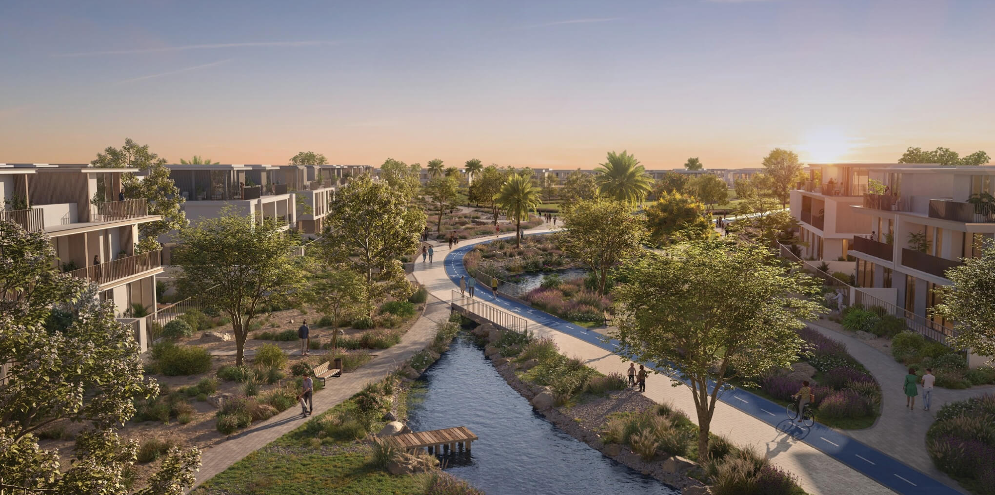 Avena and Avena 2, developed by Emaar Properties, offer properties for sale in a green community of The Valley. 322 three-storey villas with 4 bedrooms are available for purchase, varying in size from 939 square meters to 1,634 square meters. Prices for Avena 1 & 2 properties start at AED 4.36 million. Residences come with private terraces, balconies, laundry rooms, walk-in closets, and rooftop lounges. The architectural design of Avena is a perfect example of modern elegance. There are three facade options available. The interiors have been designed with light natural colors and high-quality materials. Avena 1 and 2 by Emaar offer luxury properties with modern amenities in a natural setting. The project is scheduled to be completed by the second quarter of 2028.