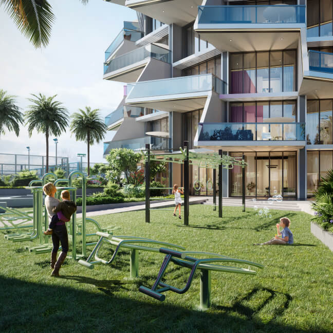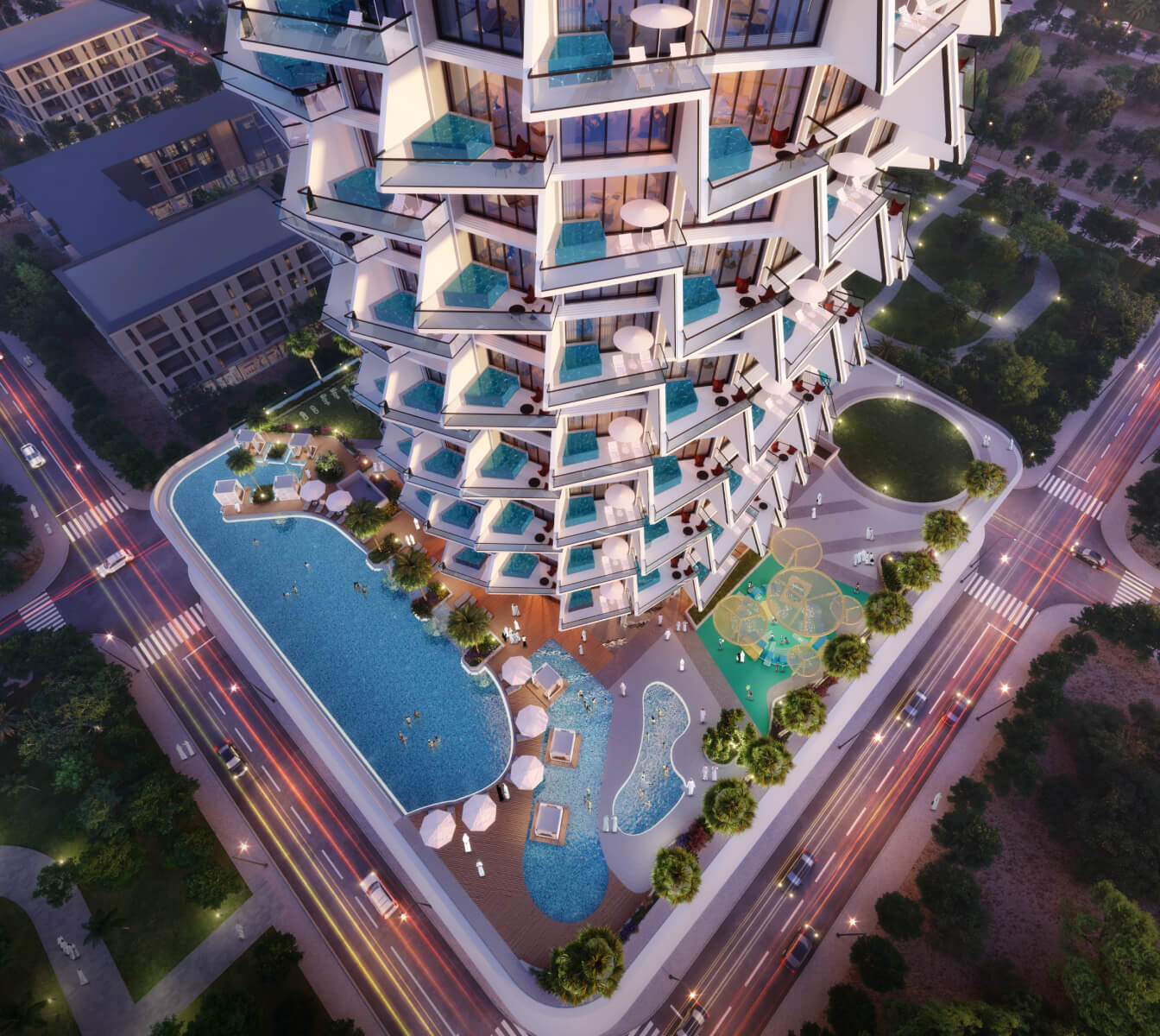 Situated in the Jumeirah Village Circle area, the 37-storey Binghatti Royale High-Rise is a residential and commercial complex. 354 apartments are available for purchase in the tower, starting from 1-bedroom units and reaching 3-bedroom ones. Binghatti Royale offers a variety of amenities for residents, including playgrounds, swimming pools, a padle tennis court, and other facilities. Schools, hospitals, supermarkets, and parks are all within easy walking distance from the complex.