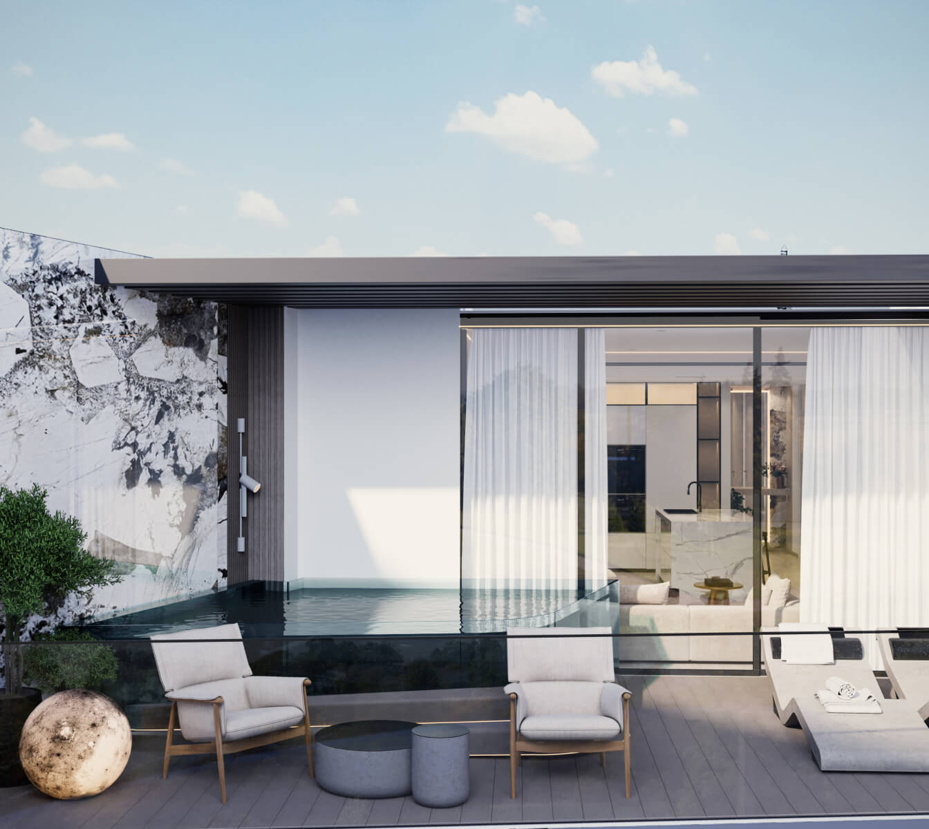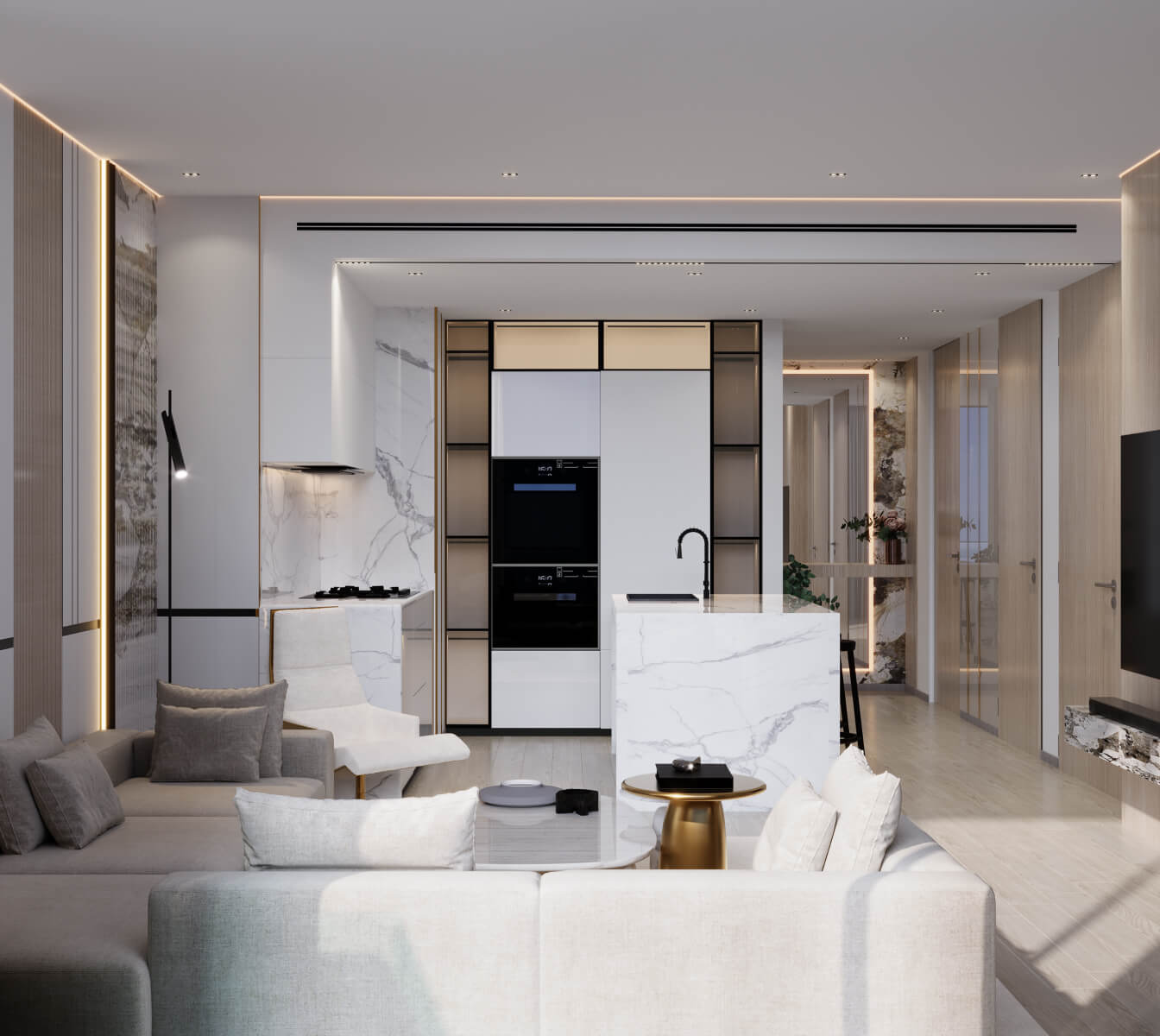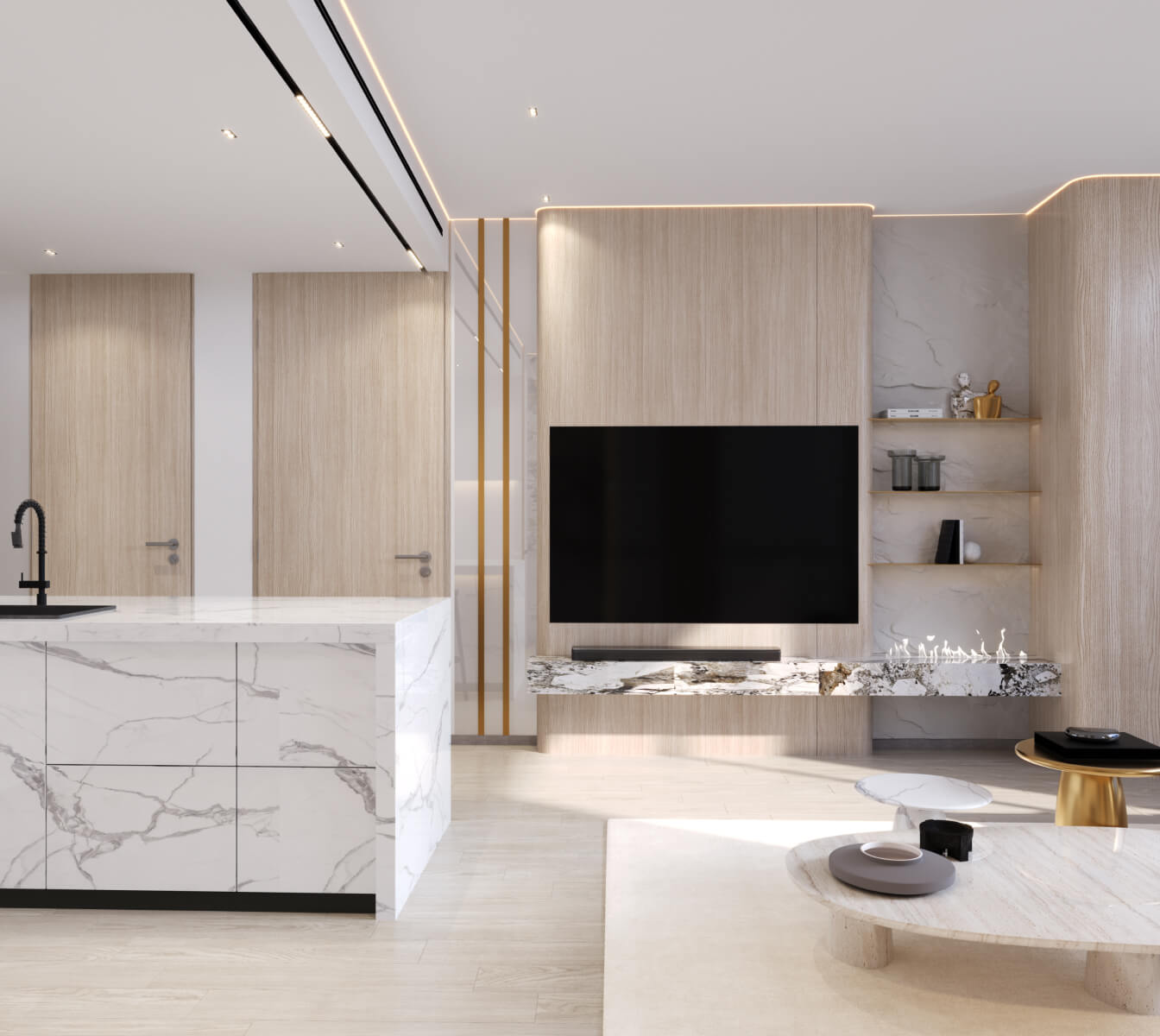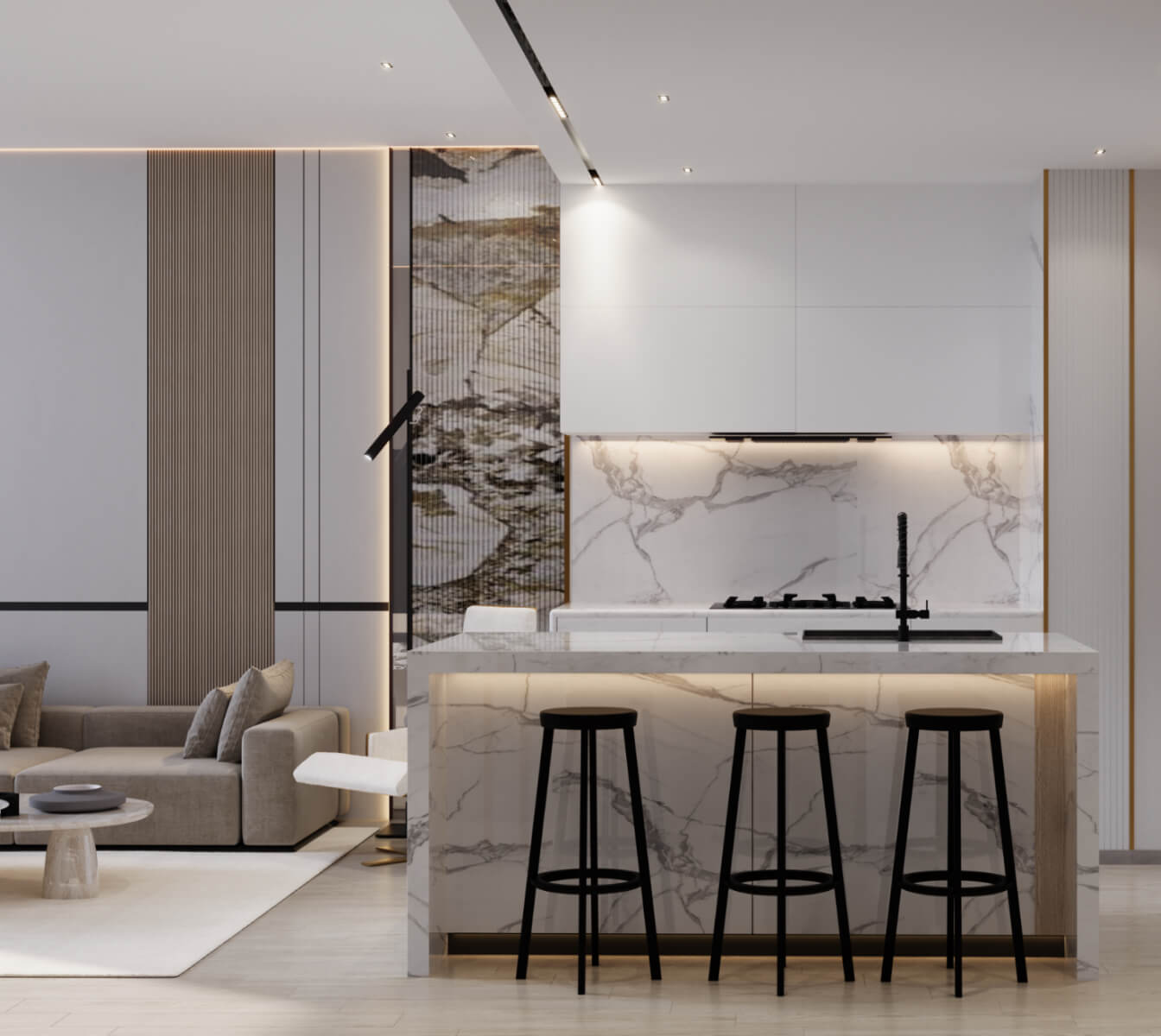 Binghatti Royale, by Binghatti Group, offers properties for sale in Jumeirah Village Circle (JVC). Apartments with one, two, and three bedrooms are available for purchase. The sizes of the residences range from 79 square meters to 201 square meters. The cost of Binghatti Royale properties starts at AED 1,099,000. The complex includes 354 residences and 16 commercial premises on the ground floor. The price includes turnkey finishing, fitted kitchens with furniture and appliances, as well as parking space in a four-level car park. Some apartments have private swimming pools or Jacuzzis on their balconies. The design of the residences combines luxury and functionality, with close attention to detail. Rooms are designed to maximize natural light and optimize space. Interiors are designed in light colors using high-quality natural materials such as wood, brass, metal, and faience. The project is expected to be completed in the fourth quarter of 2025.