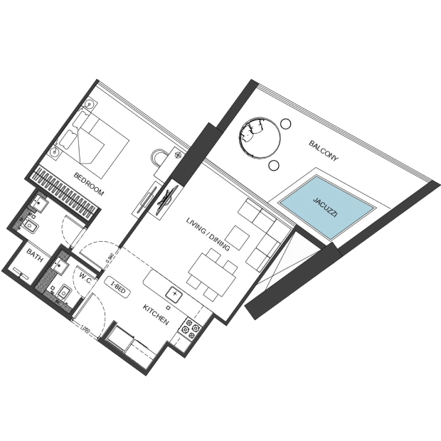 By the end of this year, Binghatti Royale will introduce a range of luxurious amenities that will enhance daily life. The development will feature an infinity pool with sun loungers, parking, a juice bar, and outdoor dining area, as well as a play area, shaded pool, state-of-the-art fitness center, and outdoor sports court. JVC, the location of Binghatti Royale, is home to prestigious educational institutions, including JSS International School, hospitals, supermarkets, and shopping centers. One of the major advantages of purchasing an apartment in Binghatti Royale is the well-developed transportation system and convenient location. It takes 10-15 minutes to reach Dubai Hills Mall, Mall of the Emirates, and Dubai Marina, while Sufouh Beach, Downtown Dubai, Burj Khalifa, Dubai International Airport, and Al Maktoum International Airport are all within a 20-30 minute' drive.