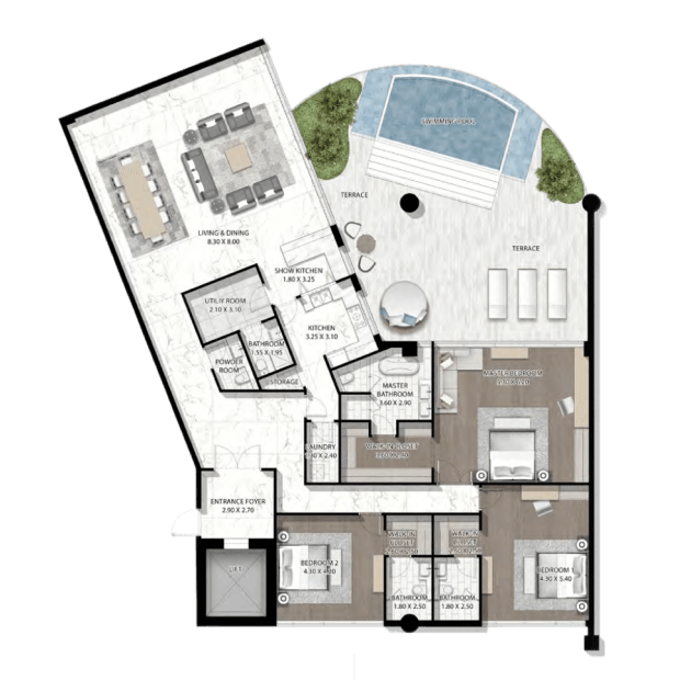 Damac presents the new Cavalli Couture project in the prestigious Al Safa area. The complex offers spacious apartments with three, four, and five bedrooms, as well as a six-bedroom penthouse for sale. The unique interior with animal prints and natural motifs perfectly blends with modern amenities, including a lazy river, spa, and infinity pool. Residents will be able to enjoy views of Dubai Canal, Safa Park, and the Downtown area.