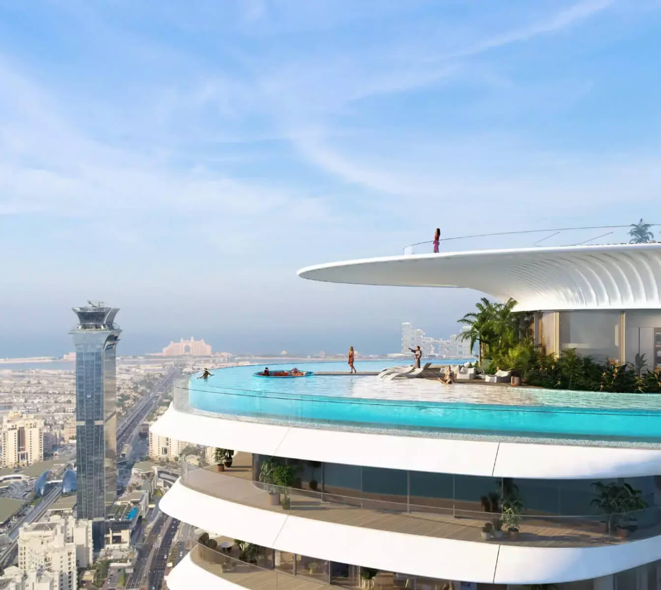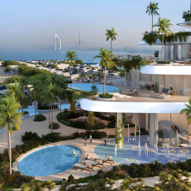 Como Residences is a new luxury residential complex by Nakheel Properties located on Palm Jumeirah, Dubai. The project offers a collection of apartments with 2-6 bedrooms, as well as duplexes with seven bedrooms and a penthouse with five bedrooms at the top floor. Owners of Como Residences will have access to a range of premium amenities, including swimming pools, a gym, spa and wellness center, paddle tennis and squash courts, and a business center with meeting rooms. Additionally, there are children's play areas available for residents.