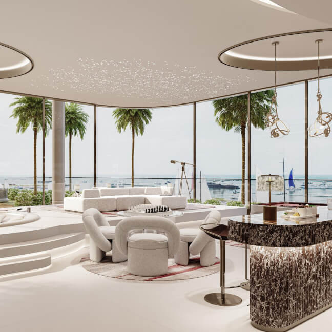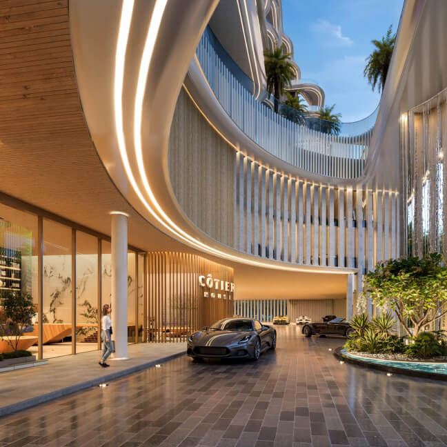 By 2027, Cotier House will offer a range of premium amenities and services to its residents. The complex's infrastructure will include an infinity pool, a state-of-the-art fitness center, a clubhouse, business spaces, and electric vehicle charging stations, among other features. Residents will have direct access to a marina, pristine white sand beaches, and top-rated golf courses. One of the main advantages of owning a property in Cotier House is its strategic location and excellent transport accessibility. By 2026, Dubai Islands and the main part of the emirate will be connected by the Infinity Bridge, allowing residents to quickly reach other parts of Dubai. It will take approximately 20-25 minutes to get to Dubai International Airport, the Dubai Frame, the Dubai World Trade Center, and Downtown Dubai. Business Bay can be reached within about half an hour.