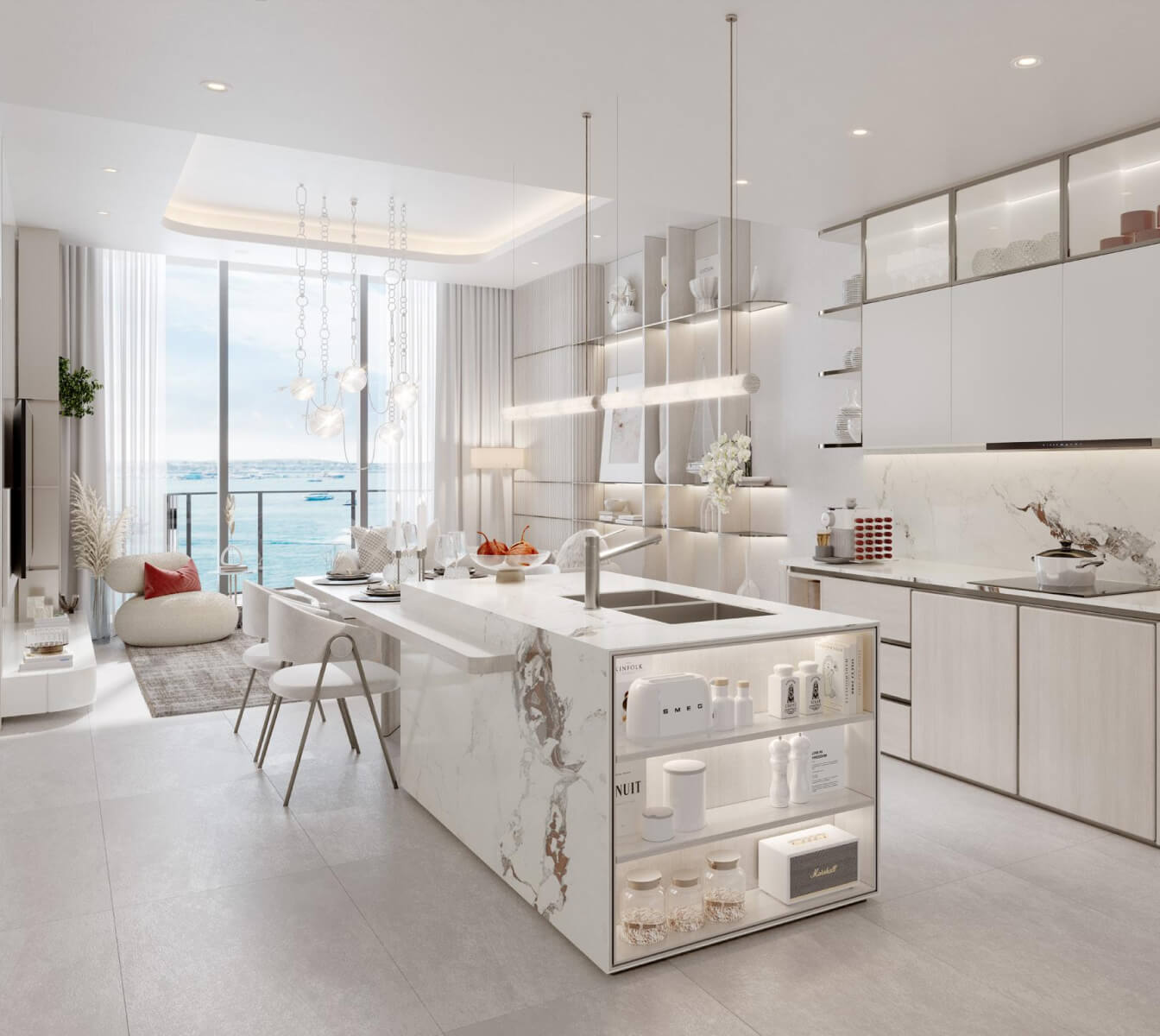 Cotier House by Imtiaz Developments offers properties for sale in the Dubai Island area. This luxury development features a variety of 1-3 bedroom apartments, 3-bedroom townhouses, and 3- and 4-bedroom duplexes, ranging in size from 274 to 1,492 square meters. Prices for Cotier House properties start at AED 2.4 million. The residences include 3.2-meter-high ceilings, luxurious finishes, and stylish furnishings from renowned brands. The interiors are designed in light colors using high-quality natural materials. Each residence has a balcony and panoramic windows offering views of the stunning marina and Dubai skyline. Completion of the project is expected in the first quarter of 2027.