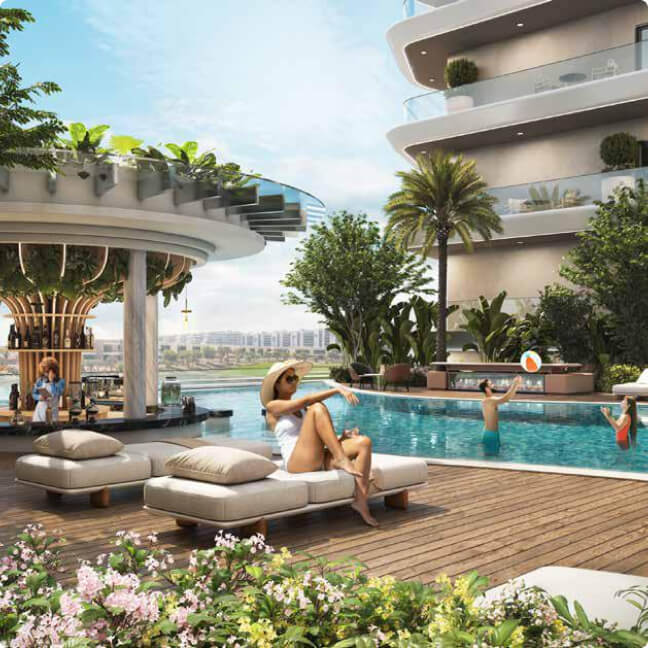 Elo 2 has boasts an impressive array of amenities, including a swimming pool with a bar, BBQ area, outdoor cinema, gym, climbing wall, and children's playgrounds. Residents will have access to all these features, ensuring a comfortable and convenient living experience. The main advantage of buying an apartment in Elo 2, which is located in DAMAC Hills 2, is its convenient location. This vibrant neighborhood is surrounded by lush greenery, providing a sense of peace and comfort amidst the hustle and bustle of the city. The area has parks, fishing lakes, sports fields, restaurants, and shops, making it a great place to call home. The proximity to major highways like Jebel Ali - Lebab Road and Emirates Road ensures easy access to different parts of Dubai. DAMAC Hills is only a 15-minute drive from Elo 2, and Global Village, IMG Worlds of Adventure, and Dubai Outlet Mall can all be reached within 25 minutes. Al Maktoum International Airport and Dubai International Airport are both about half an hour away from Elo 2 by car. Educational institutions are also conveniently located, most of them being within a 20- to 30-minute car ride.