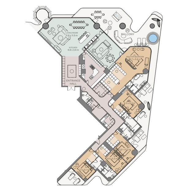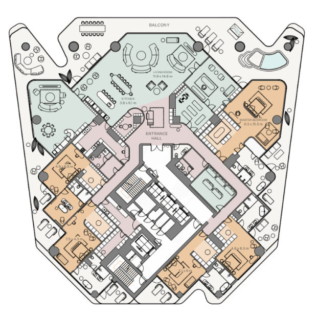 When developing projects, R.evolution applies its unique concept of “5 dimensions and 7 senses.” Beyond the traditional four dimensions, they add a fifth, inspired by their audience’s unique perception of life. This approach allows them to create modern buildings designed with a focus on residents’ comfort. The company has completed 20 different projects worldwide. In Dubai, they are working on the remarkable Eywa building, located in the Business Bay area. Designed in the style of a large tree, Eywa consists of 48 exclusive apartments with green balconies. The project aims to redefine the perception of premium real estate, offering a variety of wellness-oriented amenities, such as meditation lounges, rooms for anti-aging treatments, modern gyms, and a clubhouse with a spacious terrace.