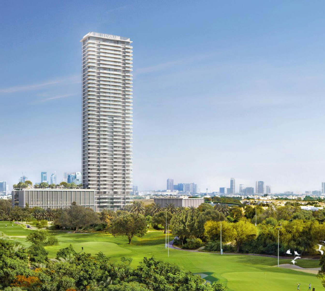 Golf Heights in Emirates Living is developed by Emaar, offering apartments with 1-4 bedrooms for purchase. Among many amenities there are family and kids pools, BBQ gardens, gym, outdoor fitness area, children’s play area. Residents will have access to a lush landscape with lakes and gardens, enjoy a golf course and tennis court. Schools and kindergartens are nearby, and the city's iconic sites are just a few minutes' drive away.