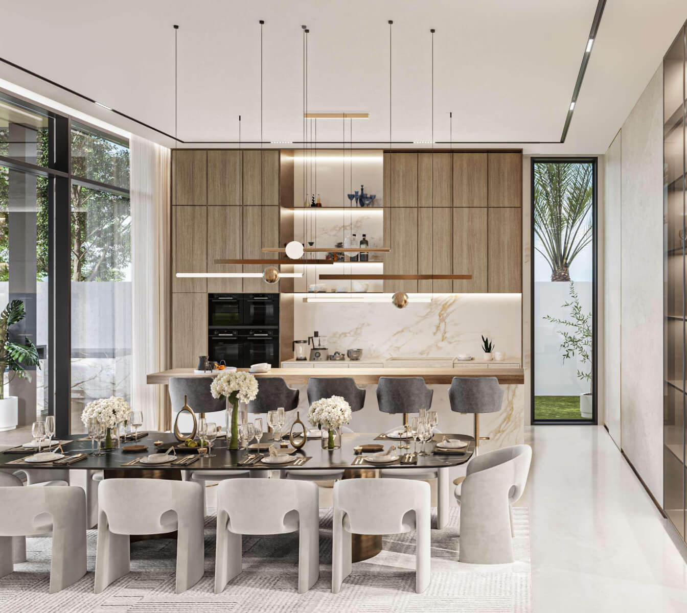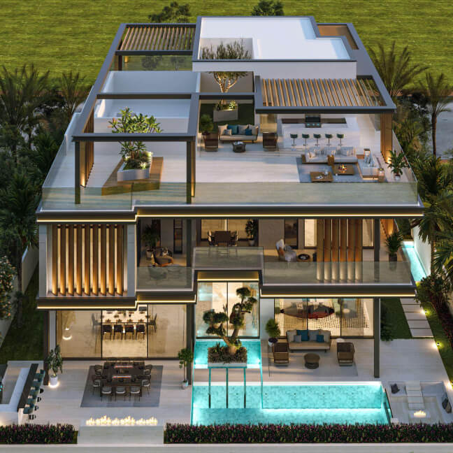 Harrisoni La Mer is a new residential development by Almal, located in Port De La Mer. The project offers luxurious five-bedroom villas for sale. Residents have access to a temperature-controlled swimming pool, fitness center, and other sports facilities. There is also a picturesque garden, numerous recreation areas, a BBQ area, and a rooftop bar. All the necessary amenities are close by, including kindergartens, schools, medical centers, and supermarkets.