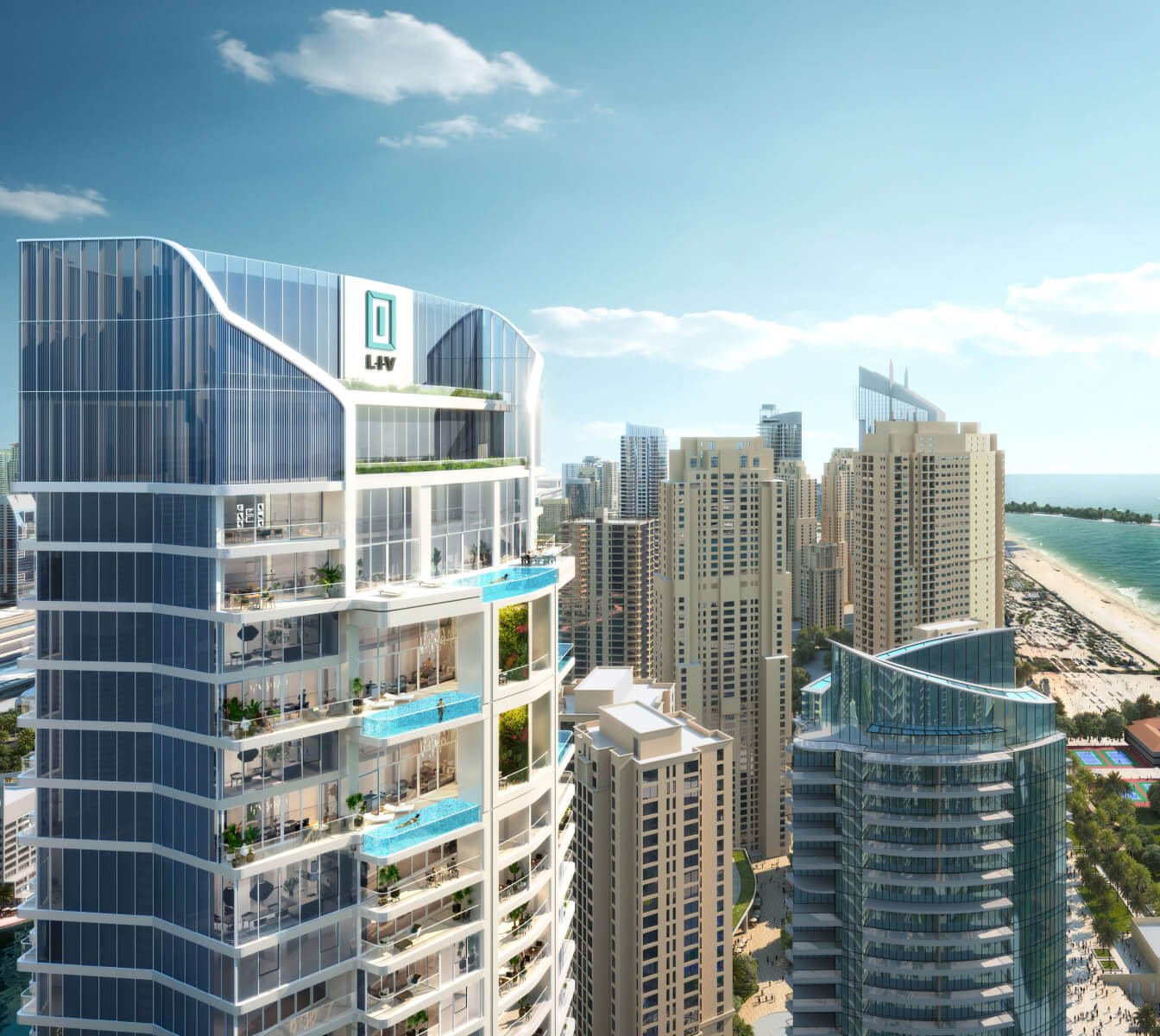 LIV LUX is an oceanfront residential complex by LIV Developers, located in Dubai Marina, one of the most sought-after communities. It offers 1-4 bedroom apartments, 4-bedroom duplexes, and a penthouse. Residents will enjoy hotel-like services and premium amenities, including an infinity pool, men’s and ladies’ steam rooms and saunas, BBQ areas, cinemas, a padel court and more. The surrounding rich infrastructure is conveniently within easy reach.