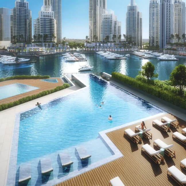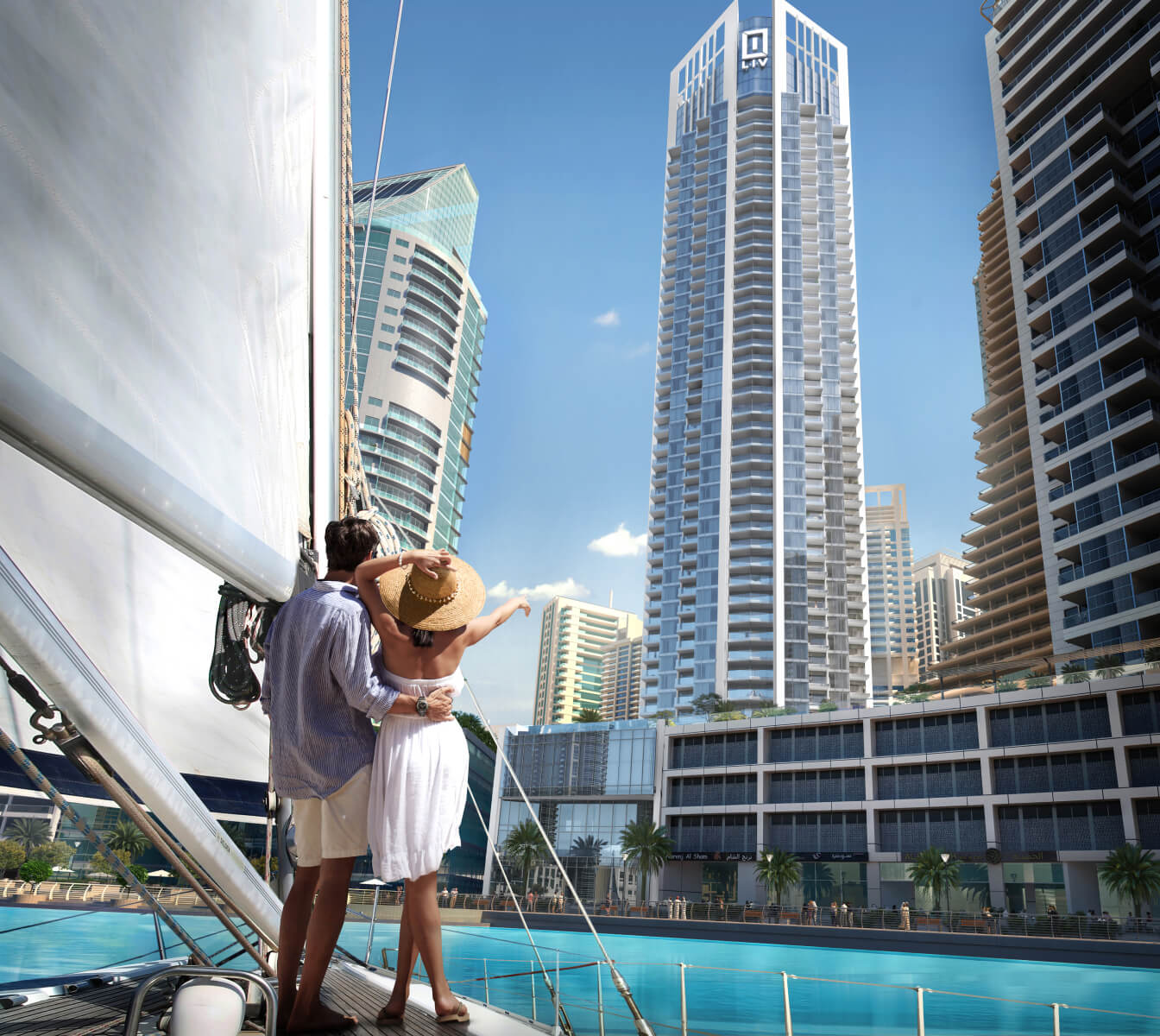 LIV Developers presents a new waterfront project, LIV Marina, located in Dubai Marina. A variety of properties are available for sale, including studios, one- to three-bedroom apartments, and four-bedroom penthouses. The project features excellent infrastructure and a wide range of amenities, such as swimming pools for adults and children, landscaped gardens, a BBQ area, children’s play zones, a trampoline park, and more. The prime location of LIV Marina makes it a highly attractive investment opportunity.