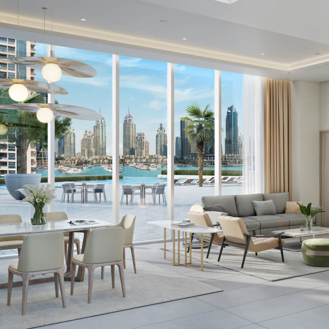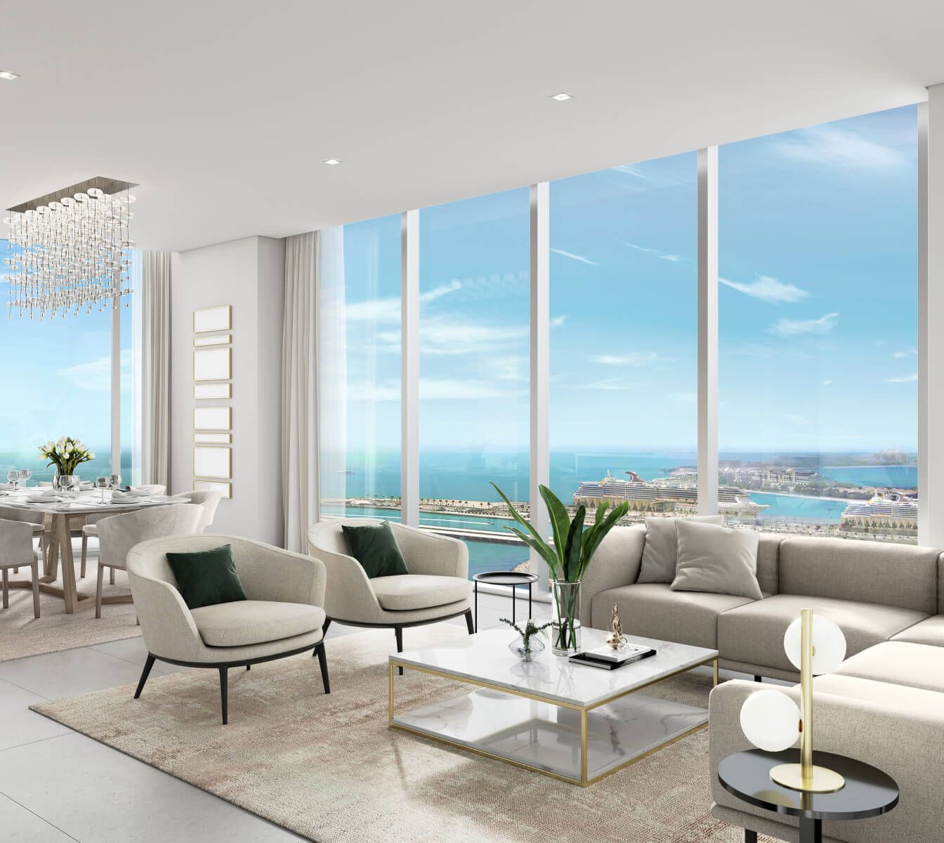 - Waterfront, Palm Jumeirah and Dubai Harbour views