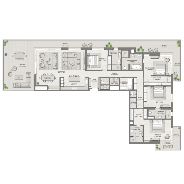 By purchasing a property in MJL-Riwa, owners can enjoy a wide range of premium amenities and services. The development will include swimming pools, state-of-the-art gyms, sports parks, fitness centres, green parks, children's playgrounds, and kindergartens by 2027. Educational institutions, hospitals, and supermarkets such as Carrefour, Spinneys, and Waitrose are also located nearby. Additionally, Jumeirah Living, with over 75 shops, boutiques, and galleries, is also nearby. Convenient access to Sheikh Zayed Road provides easy access to key locations in the emirate. The Mall of the Emirates, Palm Jumeirah, and Bluewaters Island are within a 5-15 minute drive. The largest shopping center in the UAE, Dubai Mall, and Dubai International Airport can be reached in approximately 20-25 minutes