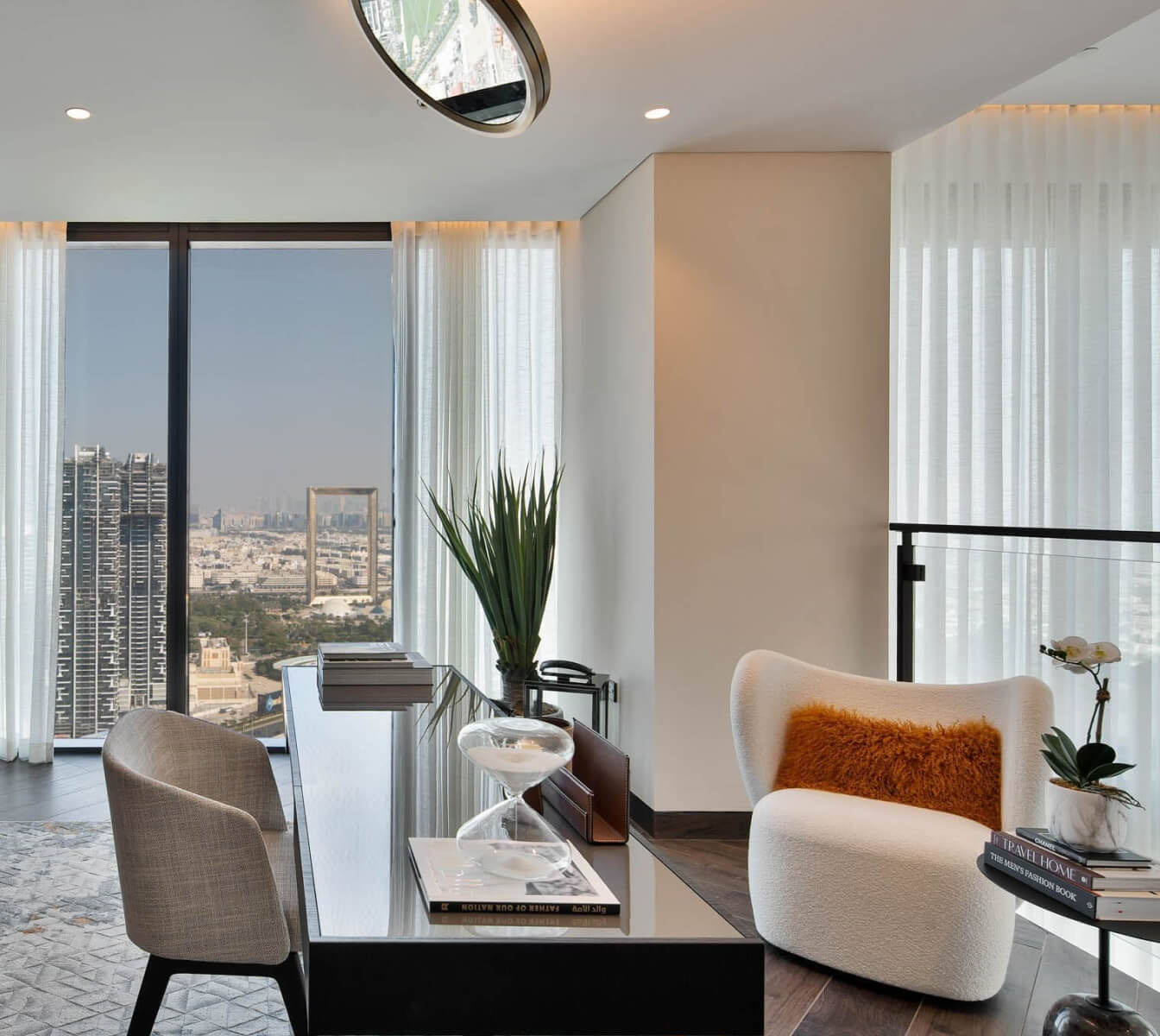 One Za'abeel, a project by Ithra Dubai, offers for sale real estate with stunning views of the Burj Khalifa in the Zabeel neighborhood. Apartments with 1 and 2 bedrooms, as well as three- and four-bedroom duplexes, are available for purchase. Residents have access to a range of advanced amenities, including swimming pools, a gym, jogging tracks, playgrounds, parking, and other premium features. Services such as cleaning, concierge assistance, and valet parking are also available.