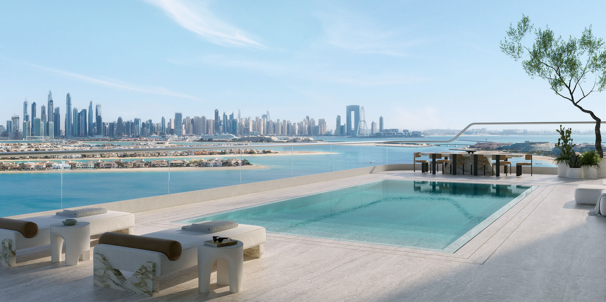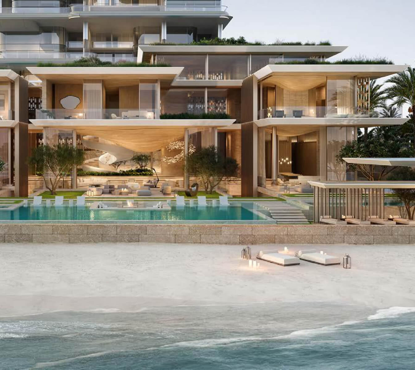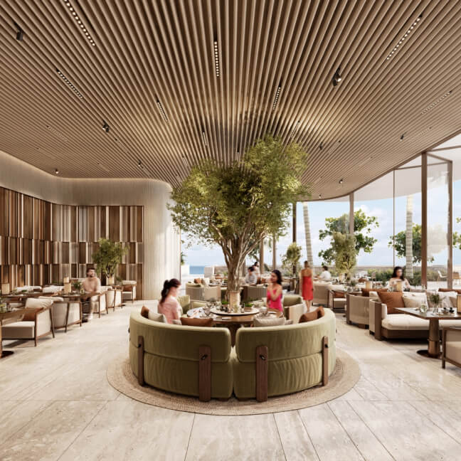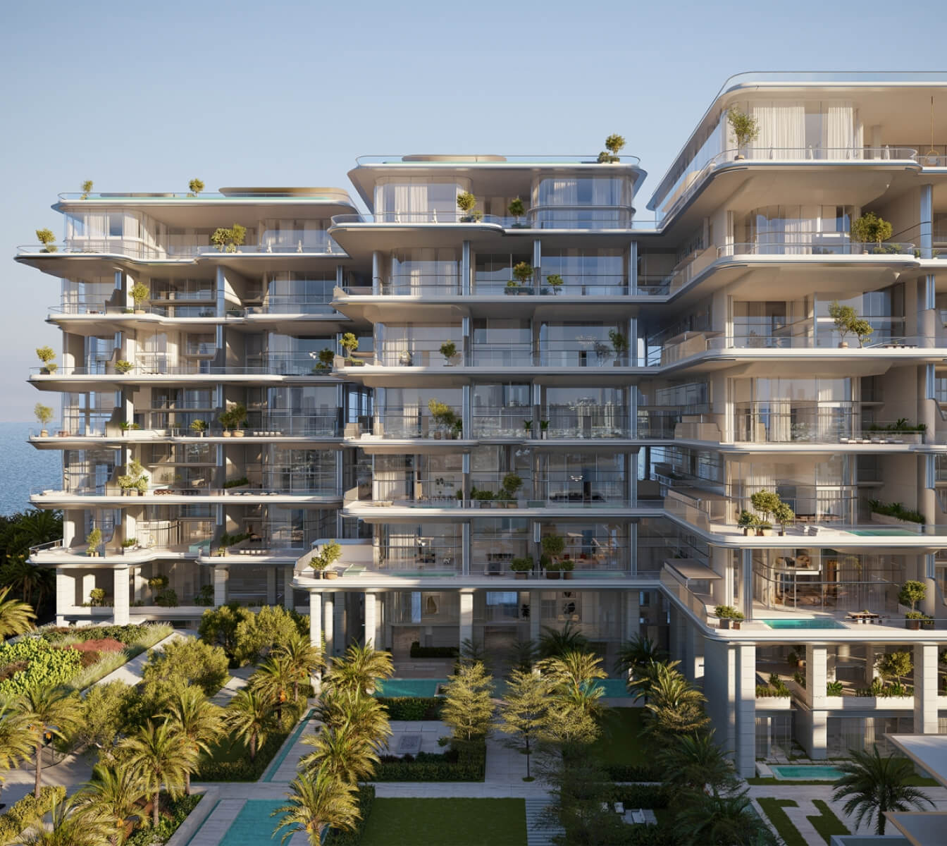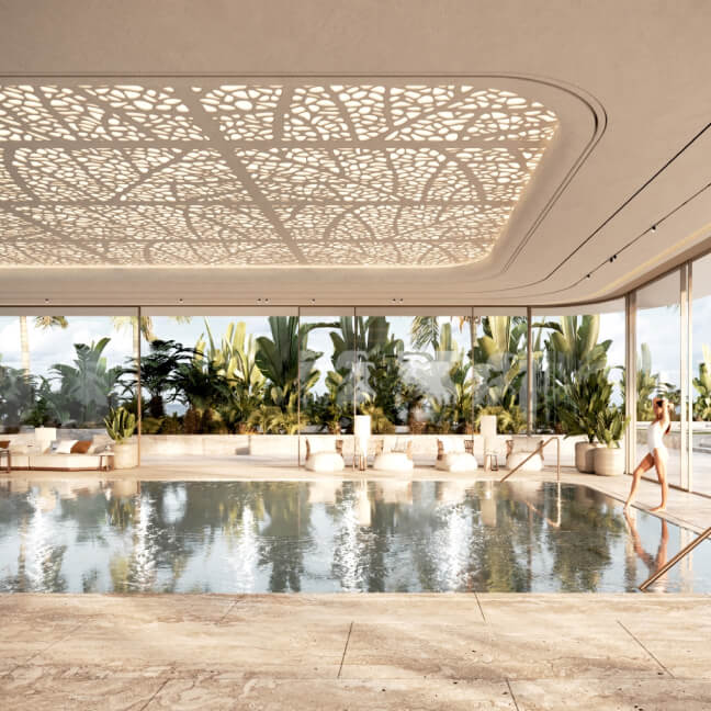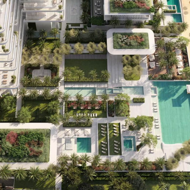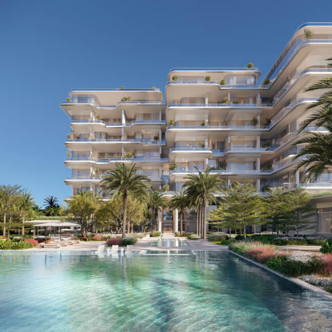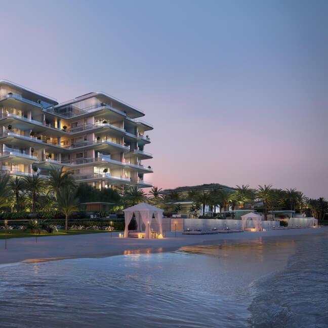 Orla Dorchester Collection by Omniyat is a one-of-a-kind residential complex, located at the apex of Palm Jumeirah. An array of properties are available in Orla: 2-4 bedroom apartments, 3-4 bedroom duplexes, 3 five-bedroom penthouses and 2 five-bedroom beach mansions. Residents will enjoy a resident only beach club, spa with treatment rooms, pools, a bowling alley, children’s pool and play area, gardens, a private cinema and many more.