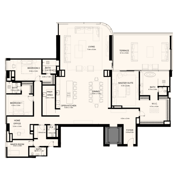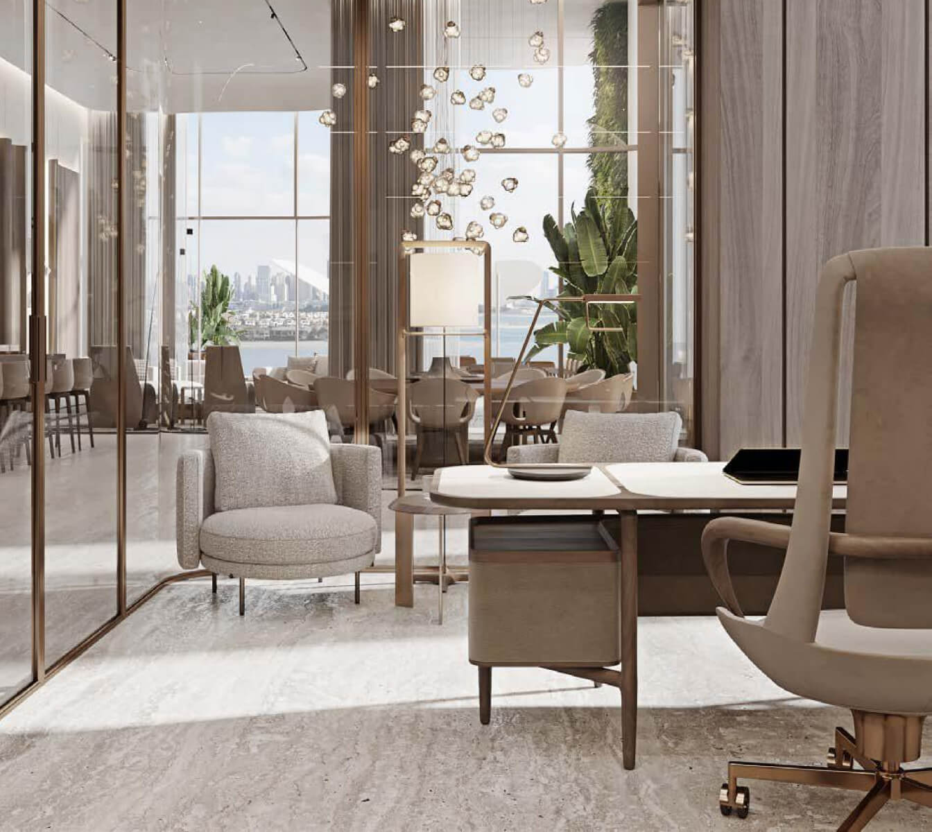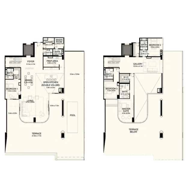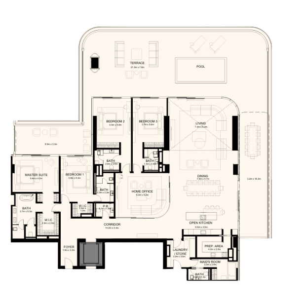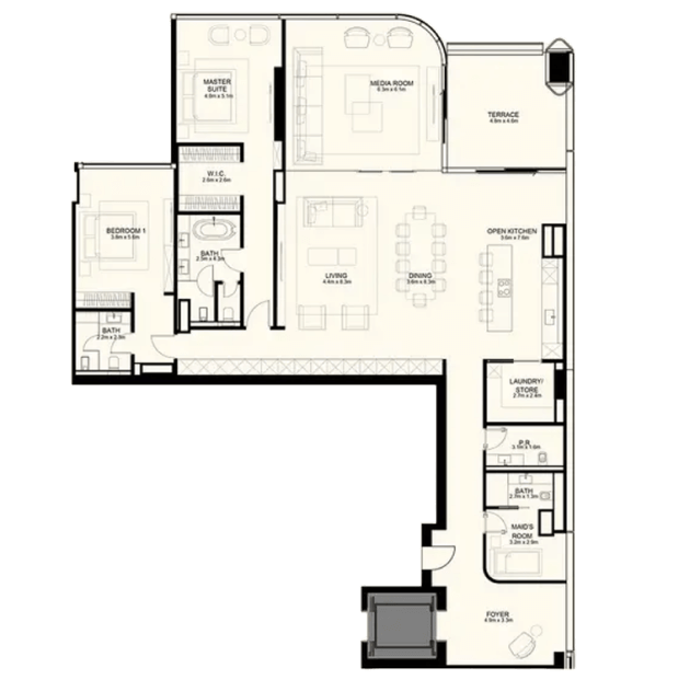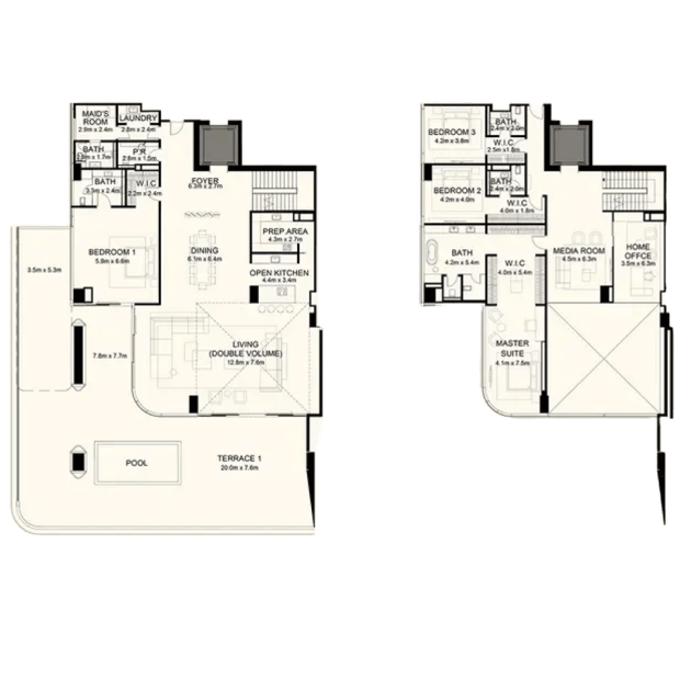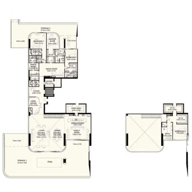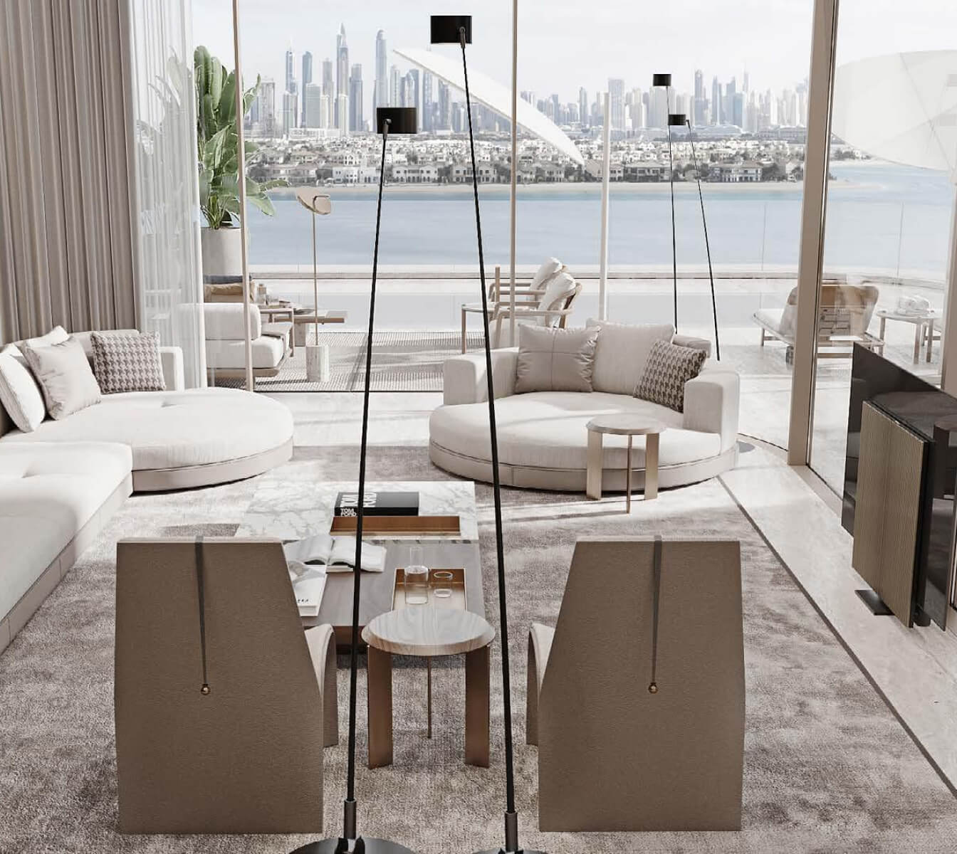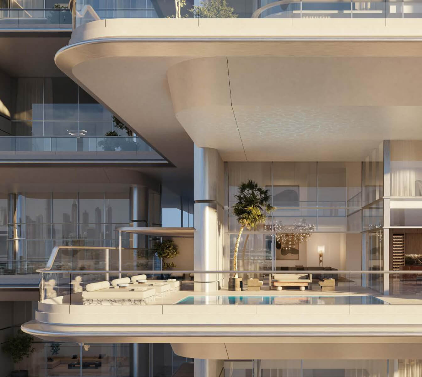 Orla Dorchester Collection by Omniyat is a one-of-a-kind residential complex, located at the apex of Palm Jumeirah. An array of properties are available in Orla: 2-4 bedroom apartments, 3-4 bedroom duplexes, 3 five-bedroom penthouses and 2 five-bedroom beach mansions. Residents will enjoy a resident only beach club, spa with treatment rooms, pools, a bowling alley, children’s pool and play area, gardens, a private cinema and many more.