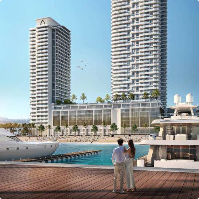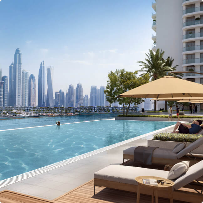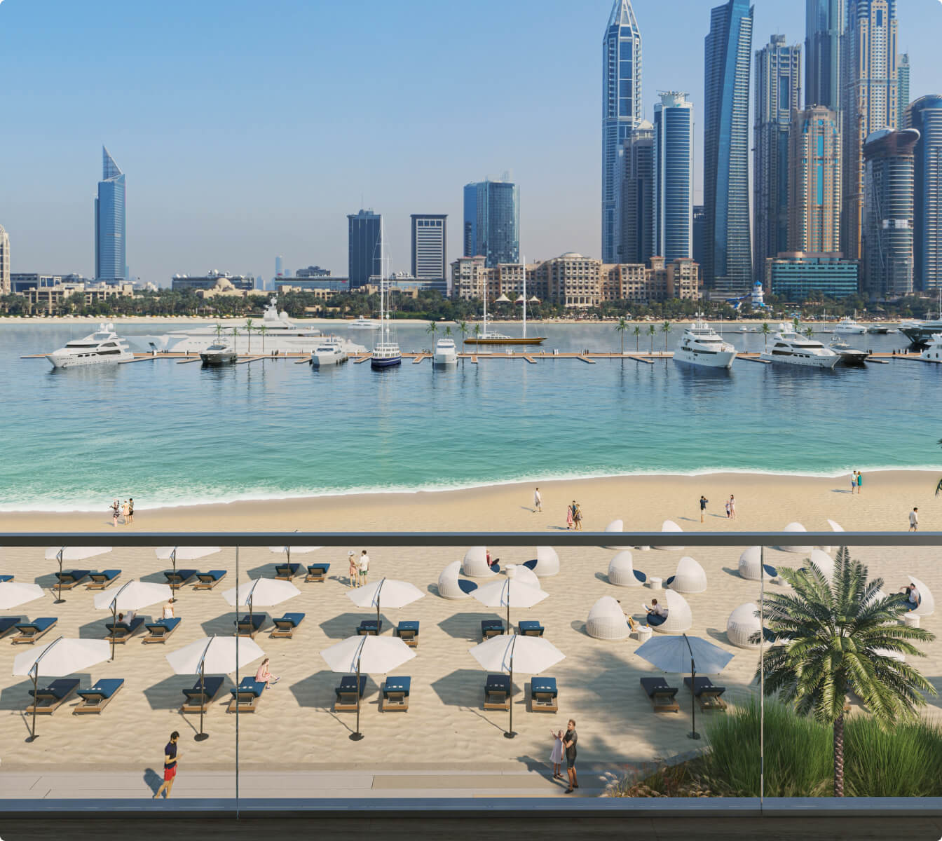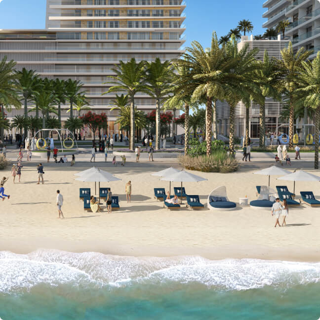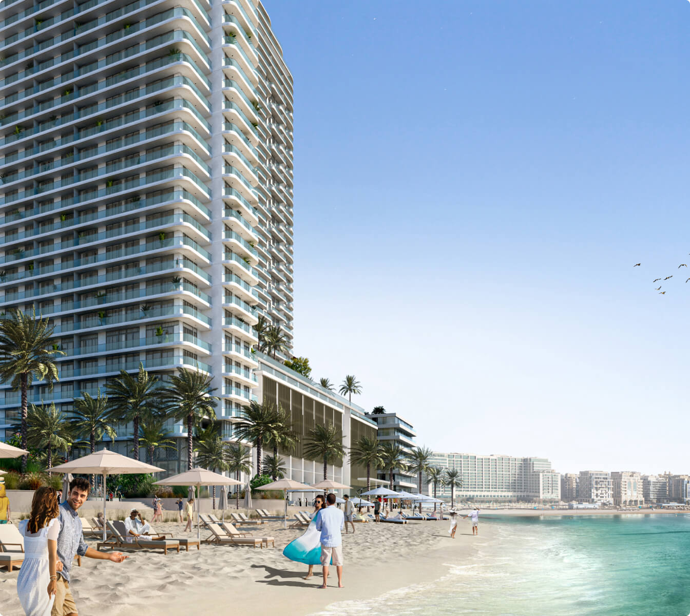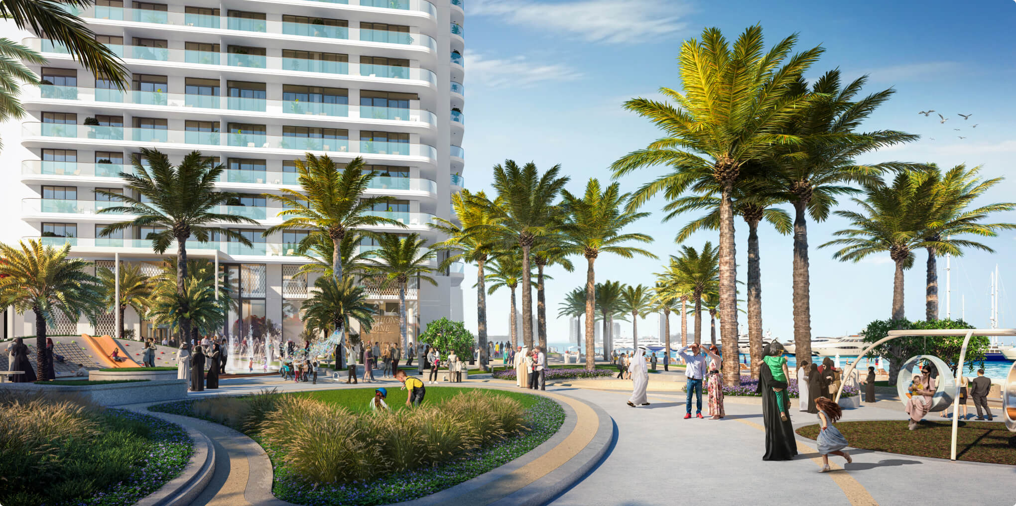 Palace Beach Residence — a project by Emaar Properties, located on the seashore in Dubai Harbour. Apartments with up to 4 bedrooms are available for purchase. The Palace Beach Residence offers the service of a five-star hotel, a large parking lot, 24/7 concierge service, swimming pools, a private beach with volleyball and other sports, as well as a yachting area.