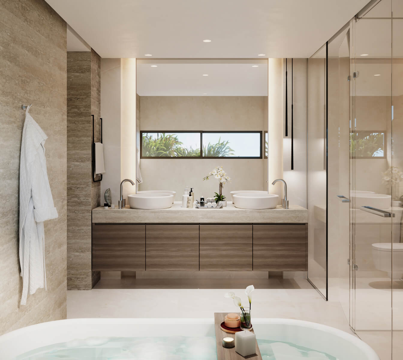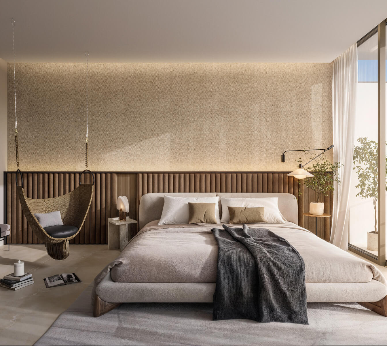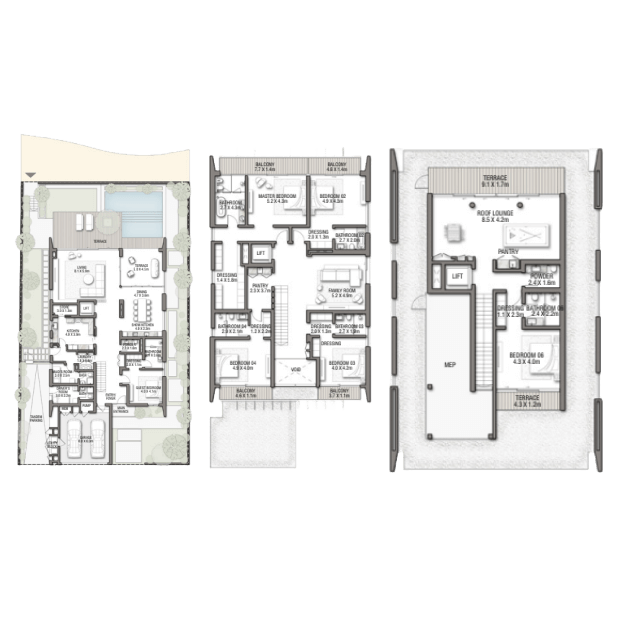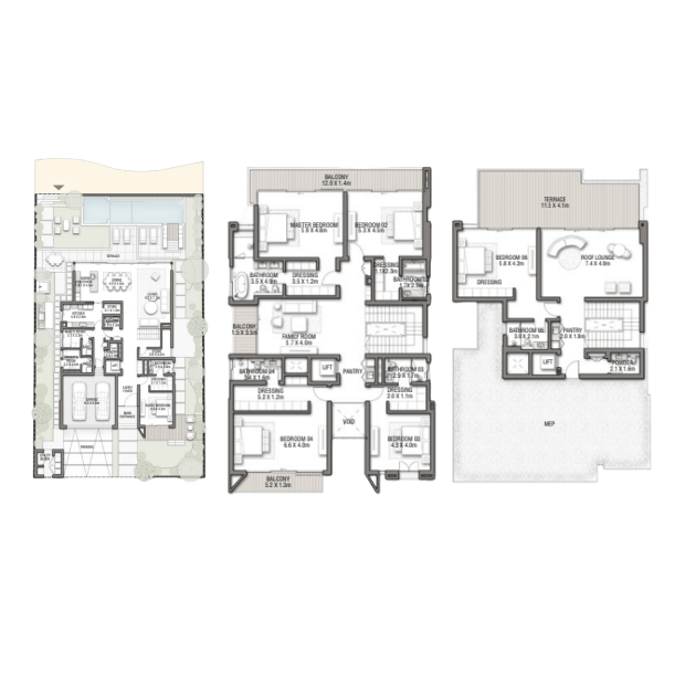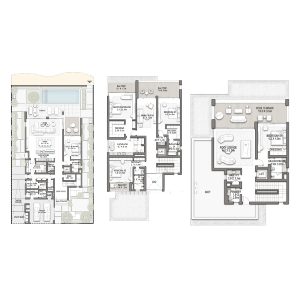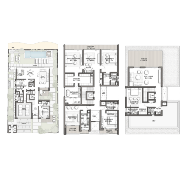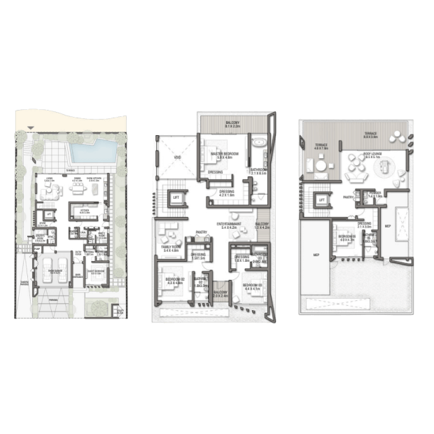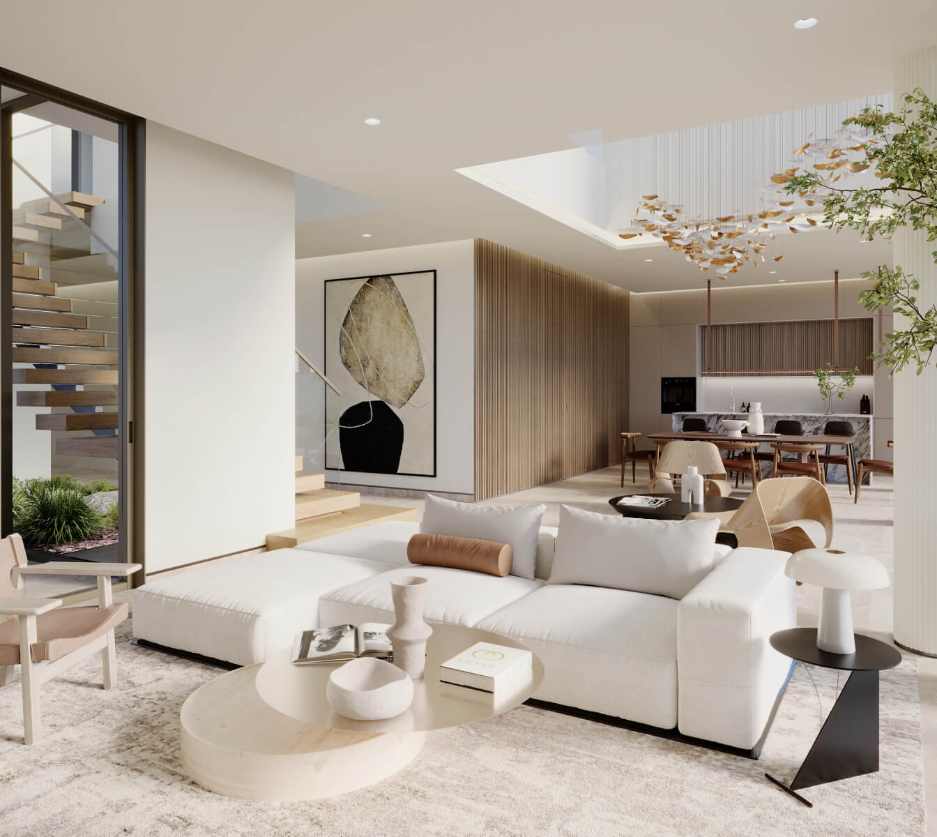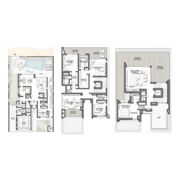 Palm Jebel Ali offers 10 different types of villas for purchase on Frond С. Each with its own unique style: Blue Horizon, Cobalt, Pacific Breeze, Cyan Sky, Indigo Ocean, Baia Luna, Ocean Whisper, Wave Crest, Bluejay, and Crystal Springs. Each villa has a private pool with a panoramic view, as well as access to a beach with snow-white sand. The villas have various features, including terraces, rooftop lounges, outdoor dining areas, laundry rooms, storage rooms, demonstration kitchens, staff rooms, driver's rooms, elevators, garages for two cars, two parking spaces on-site, and more. Some of the Frond C villas also have workrooms. The rich infrastructure of Palm Jebel Ali Island offers residents everything they need for a comfortable and vibrant lifestyle. Wide pedestrian roads, cozy parks, cycling and running tracks are available for residents to enjoy. The island has beach clubs, eco-resorts, yacht clubs, scenic parks, a medical center, a gym, restaurants, cafés, shopping centers, and other recreational areas. Palm Jebel Ali is connected to the mainland of Dubai by bridges. It takes approximately 10 to 20 minutes to reach Jebel Ali and the Canal District. Motiongate Dubai Park, Palm Jumeirah, and Al Maktoum International Airport are all located about 25 to 40 minutes away by car.