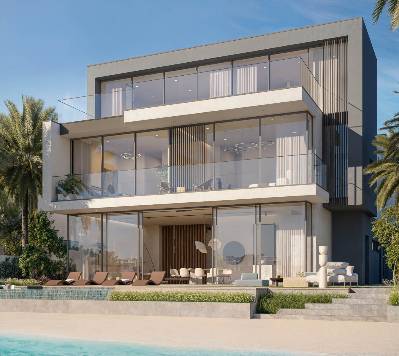 Nakheel Properties offers luxury real estate for purchase in Palm Jebel Ali Frond C on the artificial island of Palm Jebel Ali. The project features three-story villas with five and six bedrooms, with square footage ranging from 680 to 784 square meters. Prices for Frond C villas begin at 18.1 million AED. Frond C villas are an ideal choice for those seeking a resort lifestyle with developed premium infrastructure.
