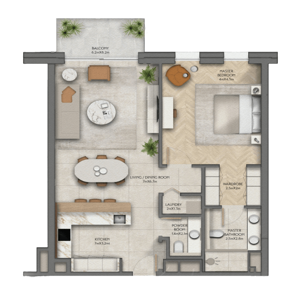 The purchase of Sama Yas real estate provides owners with access to not only the rich infrastructure of the area but also a wide range of amenities and services within the residential complex. The complex will feature swimming pools for both adults and children, as well as a gym, spa center, game room, lounge areas, library, cinema, and more. Around-the-clock security and concierge services will ensure residents' comfort and safety. Nearby is Yas Beach, a sandy beach with sunbeds and food courts, as well as Roots Bar & Kitchen and Yes Burger Cafeteria. The proximity of the Sheikh Khalifa Bin Zayed Al Nahyan Highway allows you to quickly reach any part of Abu Dhabi. Within 10-15 minutes, you can reach all the main attractions of the city, such as the beach, marina, Yas Park 2, Yas Acres Golf Club, Blossom Nursery, SABIS International, Ecs MZ educational institutions, Yas Marina Circuit, and Bioclinic Hospitals. The drive to Saadiyat Island takes approximately 20 minutes and features numerous museums and galleries, including the Paris branch of the Louvre Abu Dhabi. The Abu Dhabi International Airport is located a 15-minute drive away.