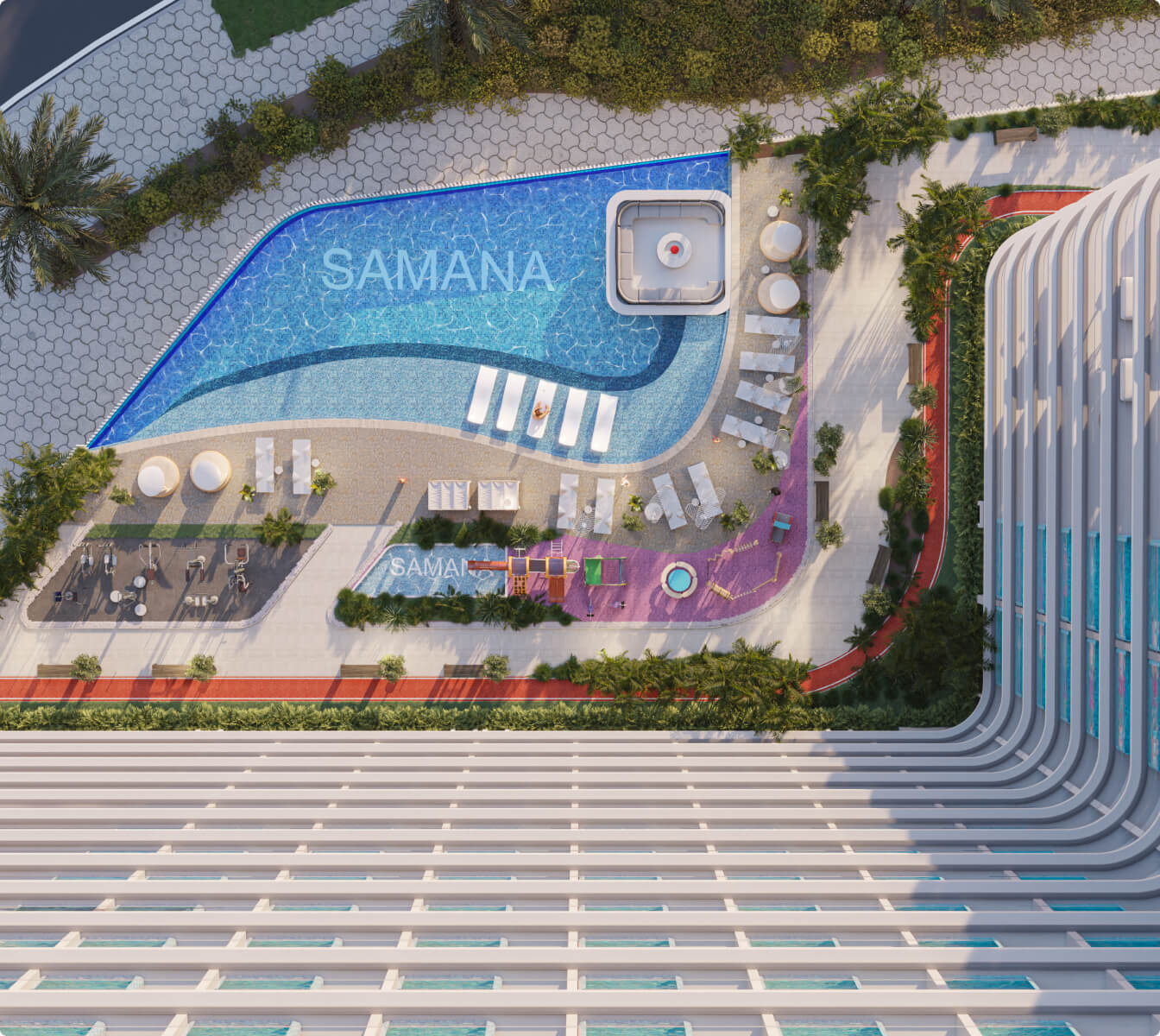 Samana Lake Views — project by Samana Developments located in Dubai Production City. Studios and apartments with up to 2 bedrooms with a private pool are available for purchase. The complex includes gyms, swimming pools, men's and women's saunas, an open-air cinema, a trampoline park, as well as tennis, basketball and water sports.