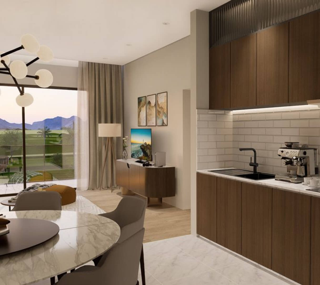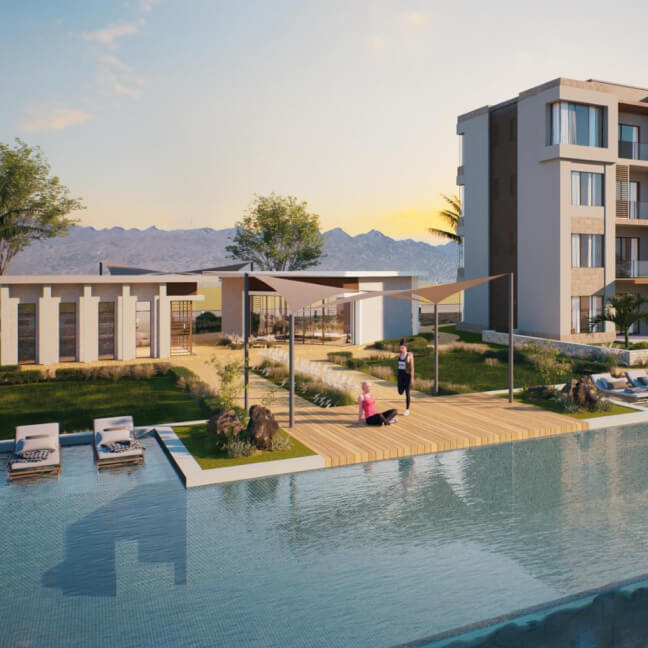 Solaris by Muriya is located in Jebel Sifah, less than an hour from Muscat. It’s a scenic residential complex on the ocean shore. Studios and 1-2 bedroom apartments are available for purchase. Units come with built-in kitchen appliances, private parking spaces, balconies or gardens. Residents can relax in a common pool, wellness spa or enjoy a gym, jogging track, BBQ areas with tents, watersports center, and other amenities.
