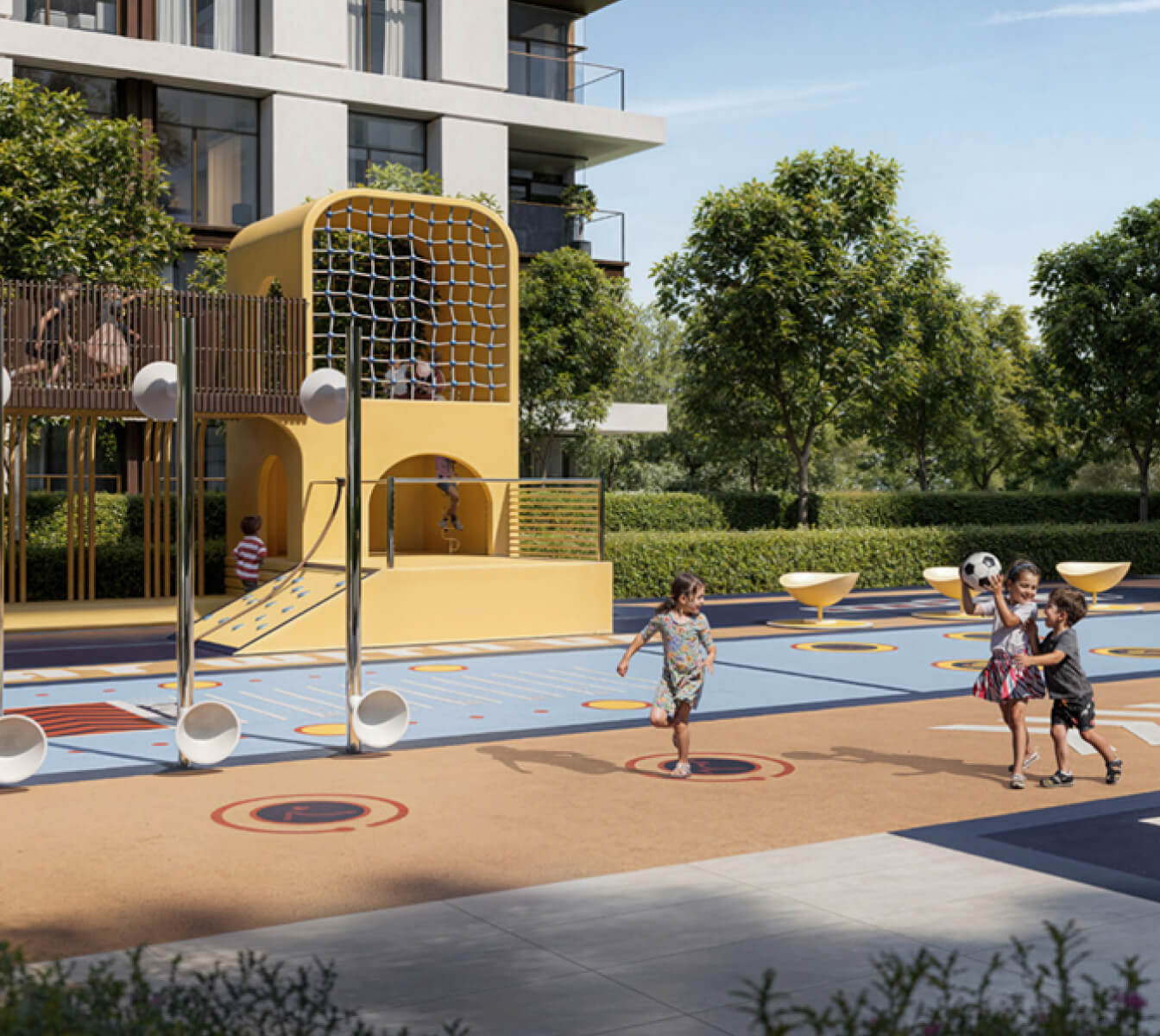 When buying Emaar Terra Heights real estate, there are several advantages that make it an attractive option. First and foremost, access to a wide range of world-class amenities is provided. These include swimming pools for both children and adults, a gym, yoga area, sports courts, mini golf, outdoor playgrounds, BBQ areas, and multifunctional rooms. In addition, shopping malls, stores, cafes, restaurants, educational institutions, and hospitals are all located in close proximity. The location in Expo City Dubai guarantees good transport accessibility. There is a metro station and bus stops within walking distance. The proximity to major highways allows you to quickly reach any area of Dubai. Dubai Marina, Al Maktoum International Airport and Jebel Ali are 10 - 15 minutes away. It takes 35 to 45 minutes to get to Downtown Dubai, Palm Jebel Ali and Dubai International Airport.