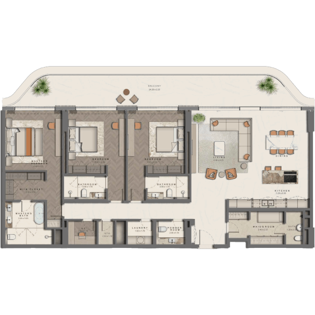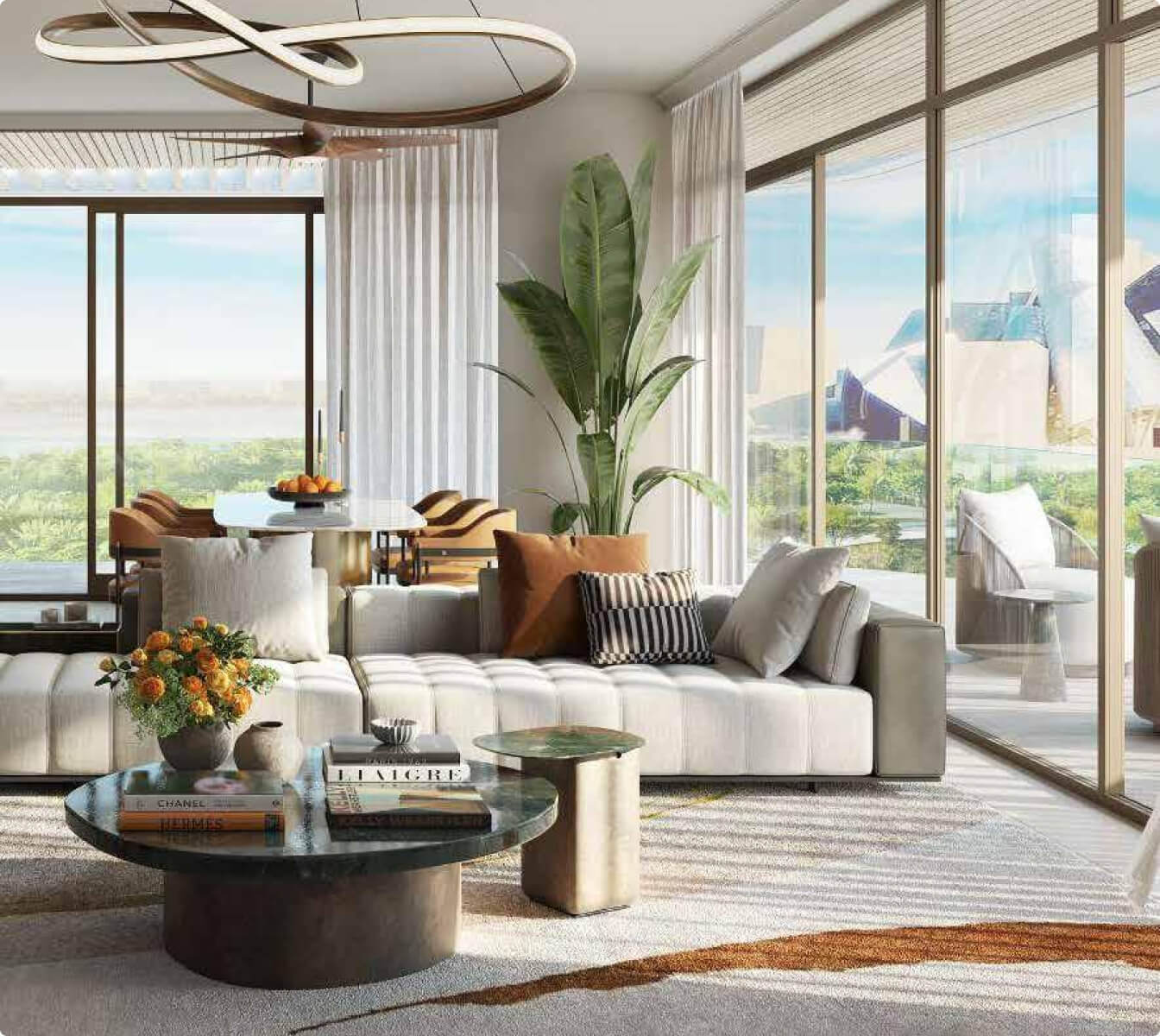The Arthouse by Aldar Development offers a range of properties for sale in the Saadiyat Cultural District of Abu Dhabi. One-, two-, or three-bedroom apartments, as well as five-bedroom sky villas, are available for purchase. The apartments range in size from 95 to 1,288 square meters, and prices start at AED 3.3 million. All residences come with turnkey finishes and furniture, which are included in the apartment price. Panoramic windows and spacious balconies make the space feel larger, while the interiors combine premium materials with contemporary design. The Arthouse boasts luxurious views of the Persian Gulf and world-famous museums like the Louvre Abu Dhabi and Zayed National Museum. The project is expected to be completed in the second quarter of 2028.