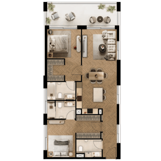 Qube Developments строит в ОАЭ жилье высокого класса, создавая районы для людей, которые ценят здоровый образ жизни. Например, проект Arisha Terraces — это четыре восьмиэтажных дома на 414 квартир. Особенность зданий — большие озелененные террасы. Для жителей есть крытый и открытый спортзалы, корт для падел-тенниса, залы для йоги и гидропонные сады. В коммьюнити-центре комплекса расположены коворкинг и общая кухня. Qube Developments нашли свою нишу на рынке. Их проекты подходят тем, кто выбирает спокойную жизнь в малоэтажных домах, но при этом хочет оставаться в центре городской жизни.