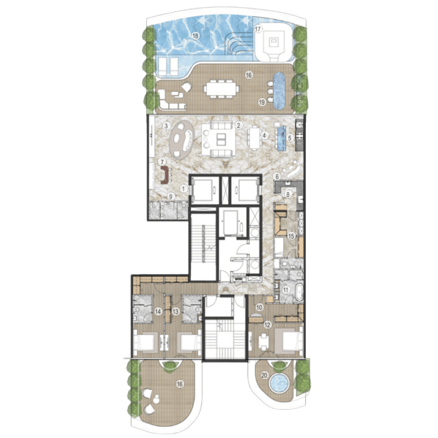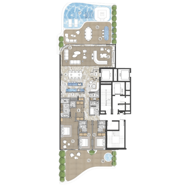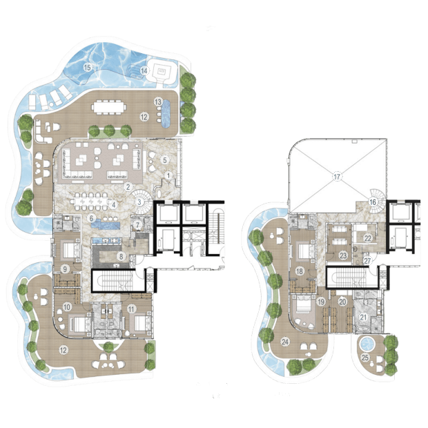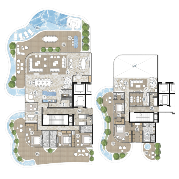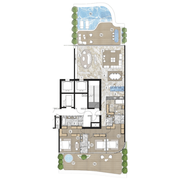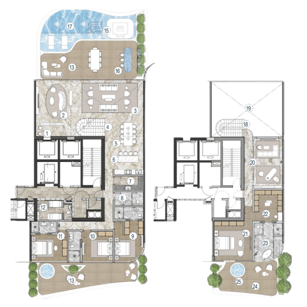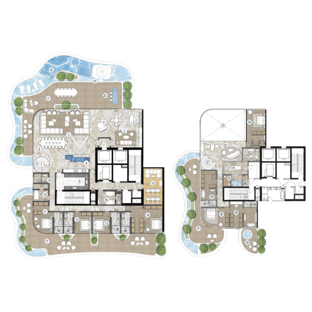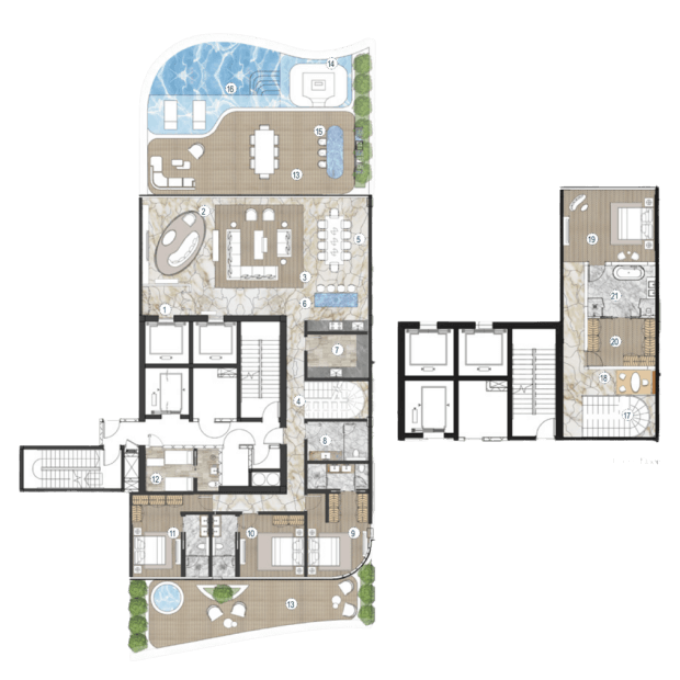 Компания AHS Properties начала работу в 2021 году с двух престижных проектов в элитных районах Дубая — виллы Searenity в Palm Jumeirah и виллы Amara в Emirates Hills стоимостью $40 миллионов. Сегодня компания строит объекты для самых состоятельных клиентов: цены на их виллы начинаются от $21 миллиона. Но в портфеле застройщика есть и резиденции — все с прямым выходом к воде. Так, в проекте One Crescent на Palm Jumeirah всего 25 резиденций с 3-6 спальнями. В каждой — терраса с видом на Dubai Palm, Burj Al Arab или городской пейзаж Дубая, а во многих — собственные инфинити-бассейны. Среди удобств комплекса — сигарная комната, спа-центр, фитнес-зоны и множество других сервисов.