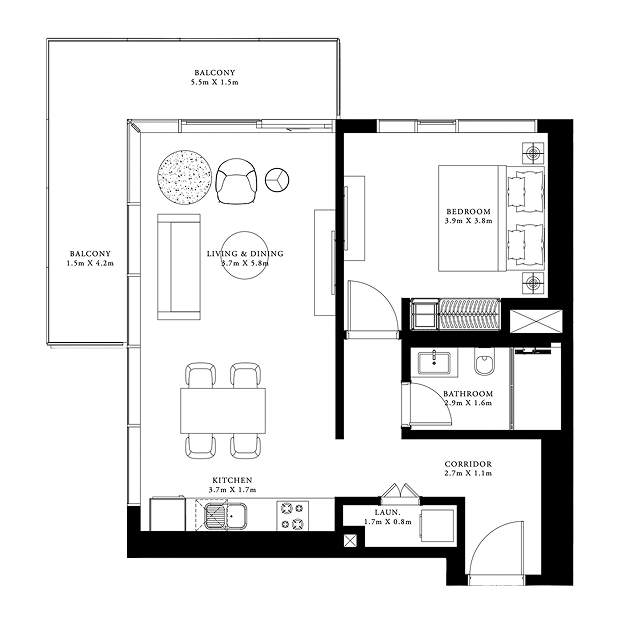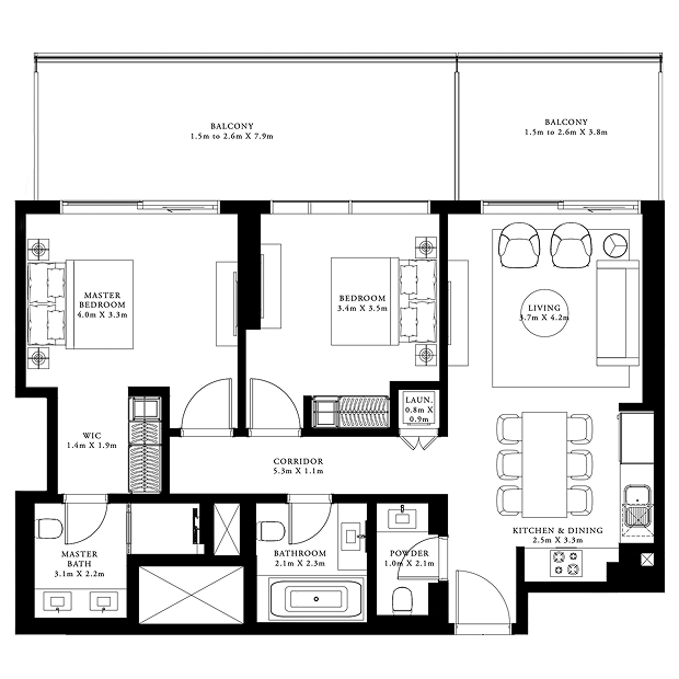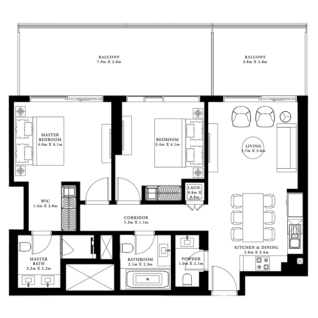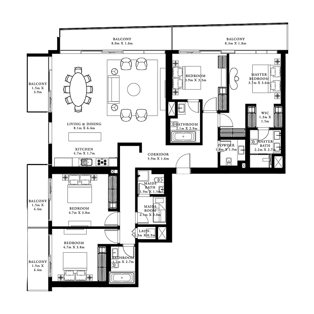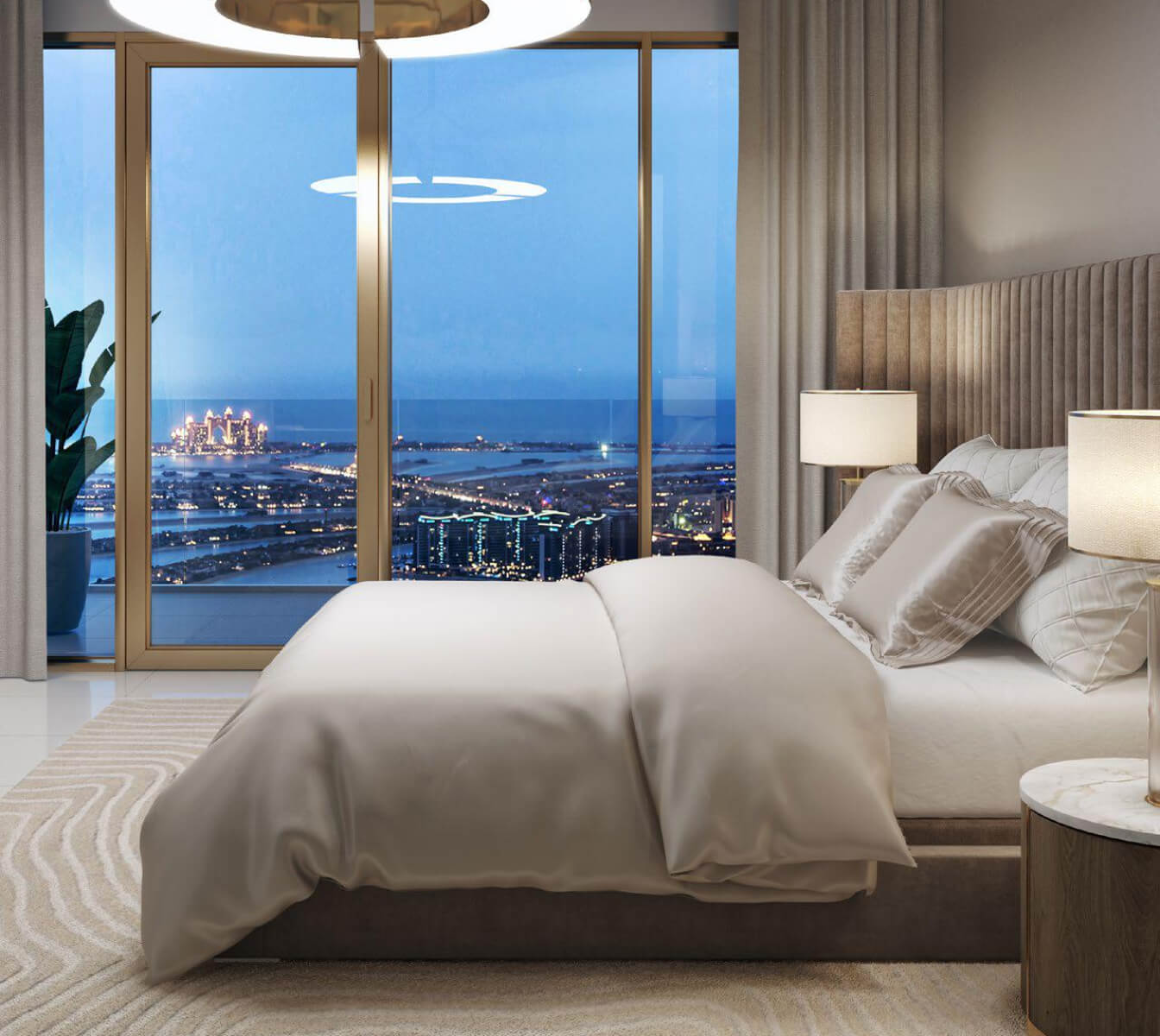 - Панорамные окна с видом на Palm Jumeirah и линию горизонта