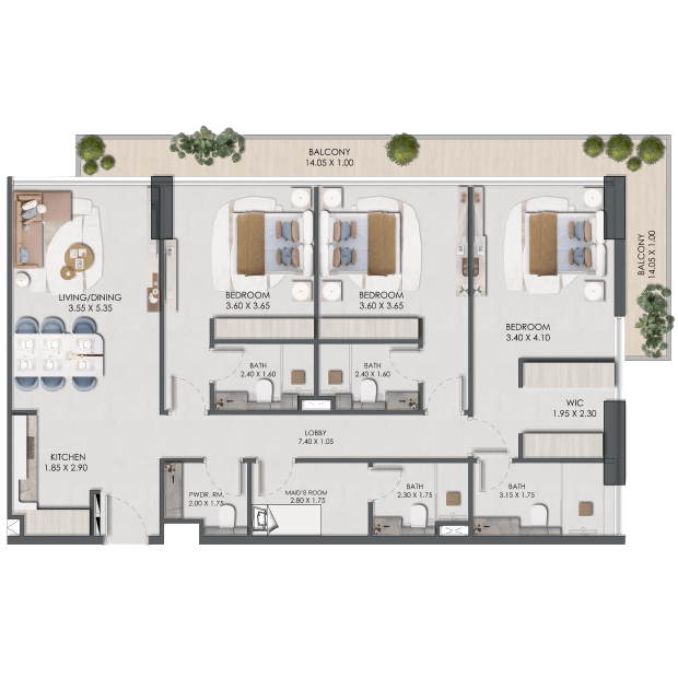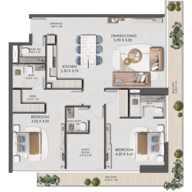 - Удобный доступ к Marina, Mall of the Emirates, Miracle Garden