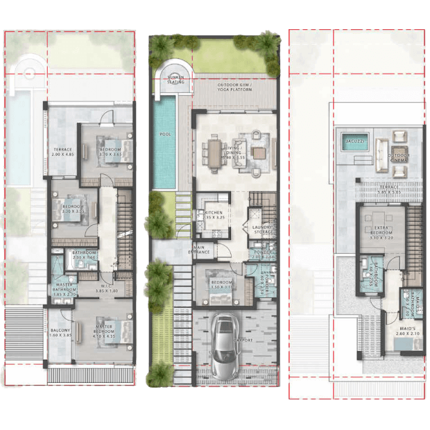 Жилой комплекс Park Greens от Damac Properties предлагает к покупке недвижимость в сообществе Damac Hills 2 в районе Dubailand. В продаже представлены трехэтажные виллы-близнецы с пятью спальнями. Средняя площадь виллы Park Greens составит 329 кв.м, а площадь участка — 229 кв.м. Можно оборудовать дополнительную спальню, игровую комнату, личную библиотеку или рабочий кабинет. В резиденциях предусмотрен частный бассейн, терраса, прачечная, тренажерный зал, частный кинотеатр и гараж. Цены на недвижимость в Park Greens стартуют от 2 890 000 AED. В планировку включены четыре спальни и одна комната, которую собственники смогут обустроить по своему усмотрению. Сдача проекта запланирована на март 2027 года.