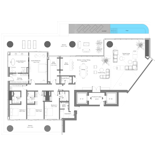 Пляжный клуб в One на Пальме ДжумейраПланировки проекта